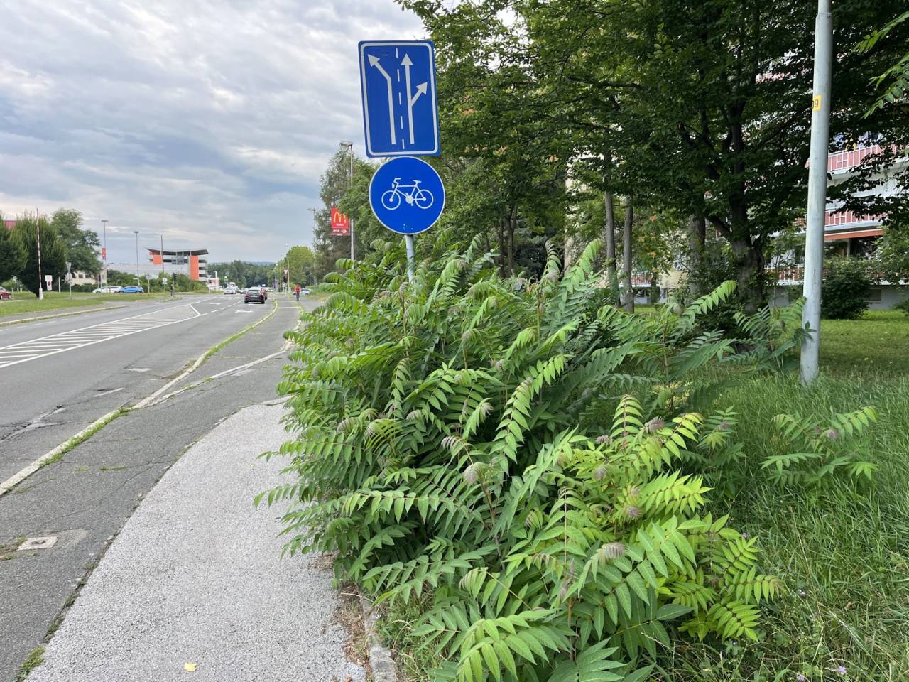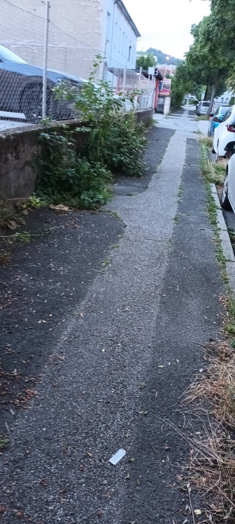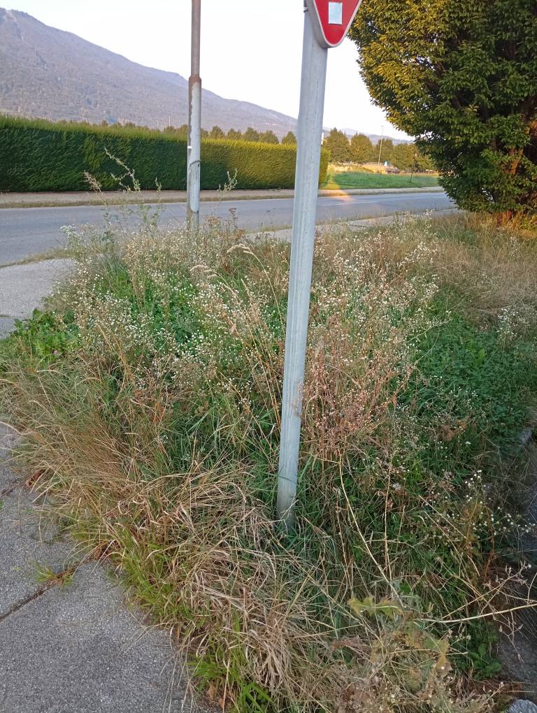 Iz razpok v asfaltu raste trava, podobno ob robnikih in na pločnikih. Zaraščeni pločniki predstavljajo tudi nevarnost za pešce, še posebej za starejše osebe, invalide in otroke, saj se zaradi preraščene vegetacije marsikje zmanjša prehodnost poti.