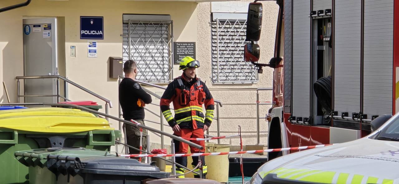 Policisti izvajajo aktivnosti, ki so v teh primerih predvidene, ustrezno je zavarovana tudi okolica policijske postaje. Na kraju posredujejo tudi gasilci.
