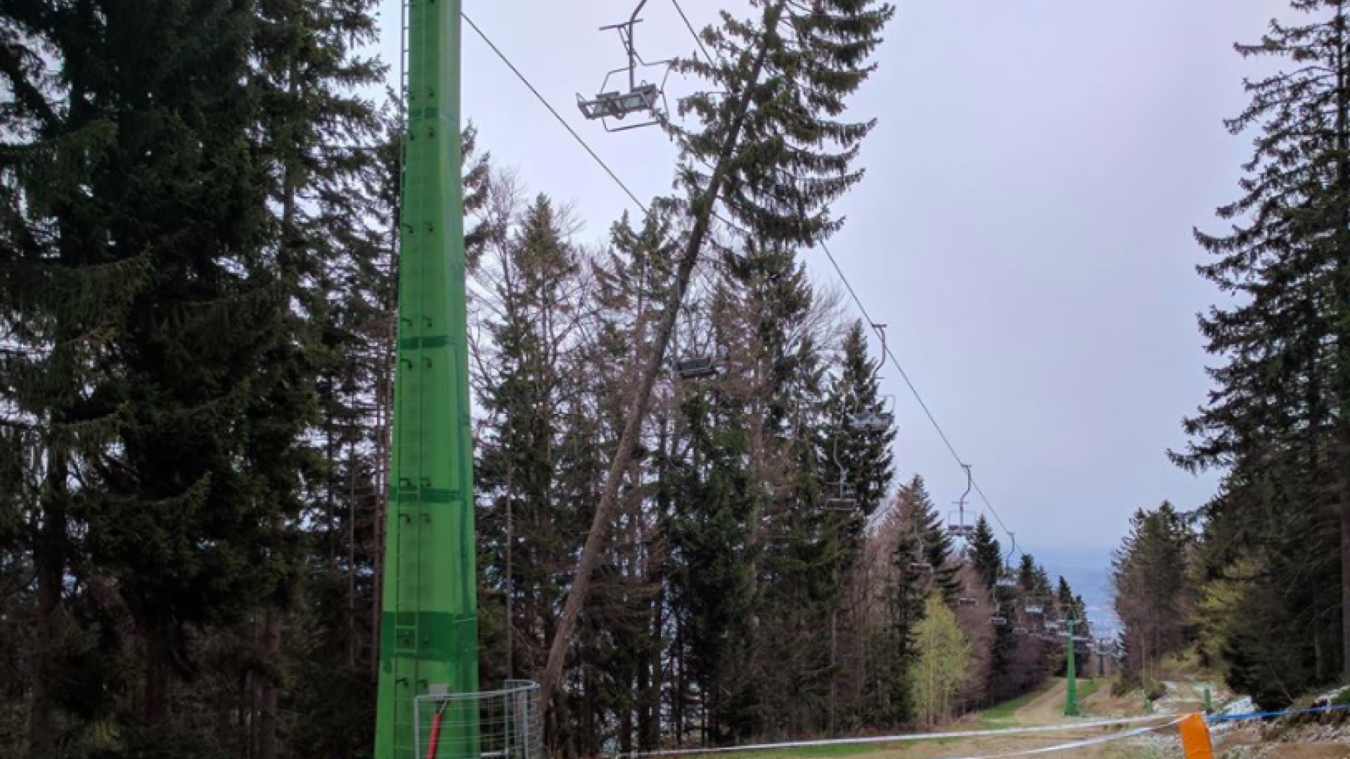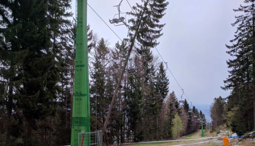 A to ni edini primer nezgod, ki jih je danes povzročil hud veter. Med drugim je podrl tudi drevo na sedežnico Sleme med osmim in devetim stebrom.