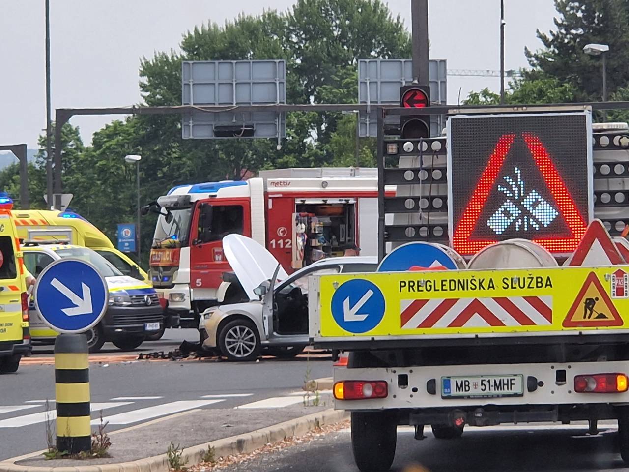 Po podatkih Uprave Republike Slovenija za zaščito in reševanje je ob 12.09 prišlo do prometne nesreče v Mariboru na Tržaški cesti, natančneje v križišču s Ptujsko cesto in Cesto proletarskih brigad.