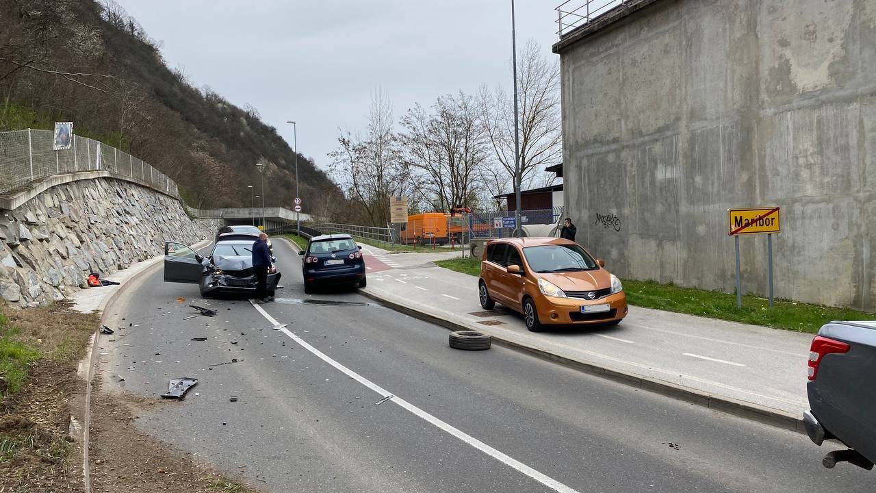 V zadnji del kombija naj bi se zaletelo eno izmed osebnih vozil, v trčenju pa je škodo utrpel še en osebni avtomobil, ki je peljal mimo.