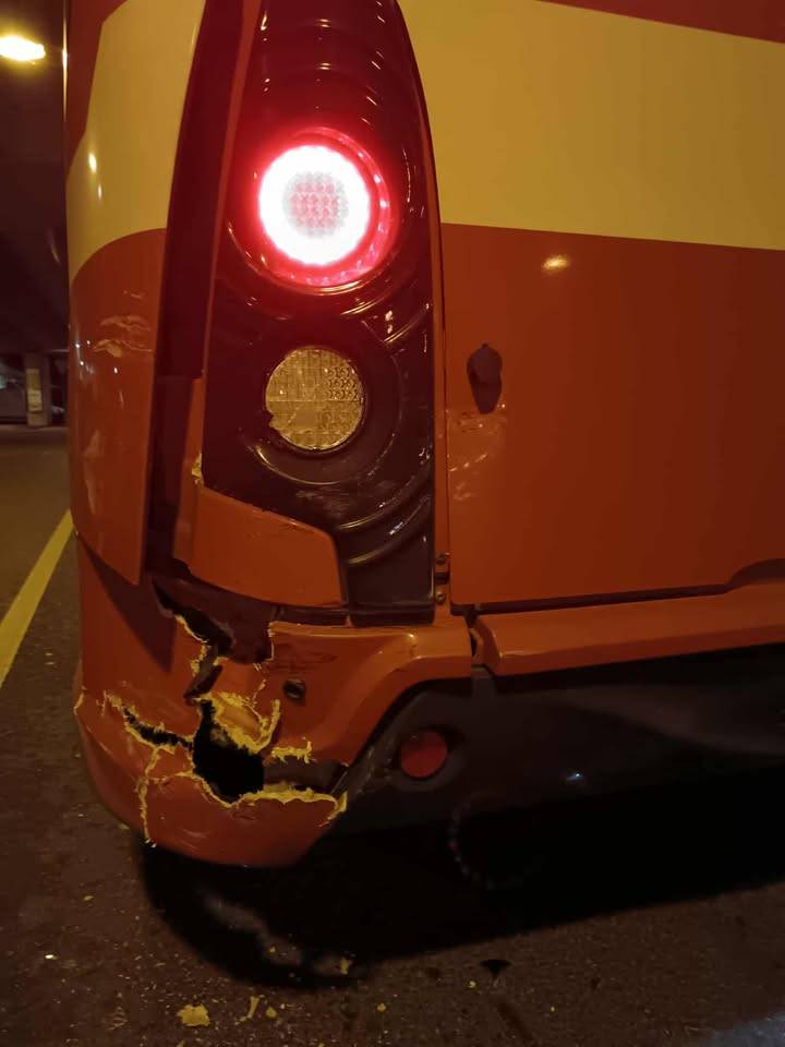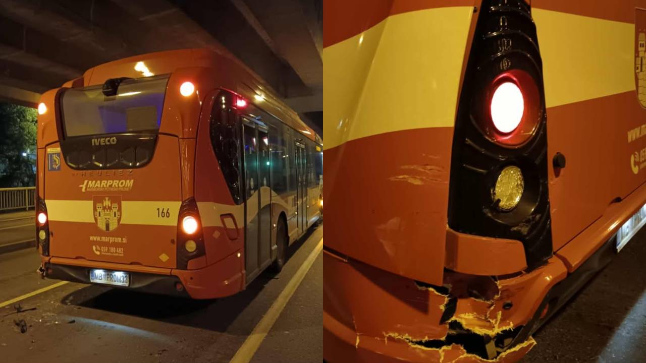 Zapisal je, da je avtobus stal pri rdeči luči, ko je vanj trčil voznik avtomobila Audi, temne barve.