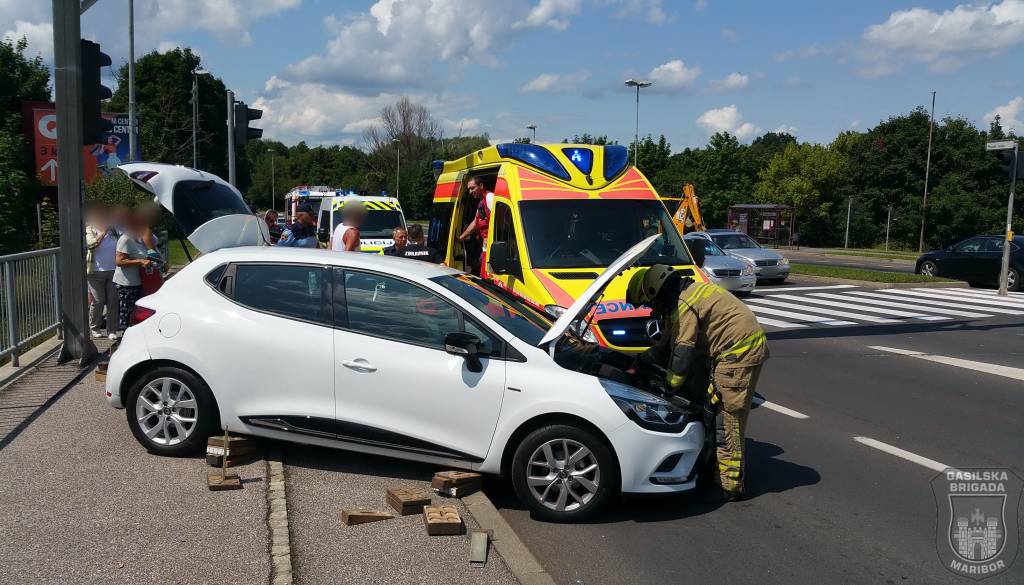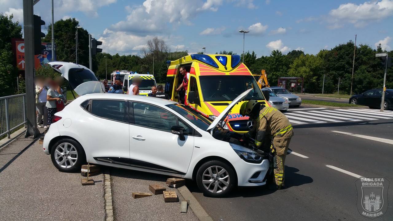 Gasilci Gasilske brigade Maribor so zavarovali kraj nesreče, odklopili akumulator, posipali iztekle tekočine ter s tehničnim posegom nudili pomoč reševalcem.