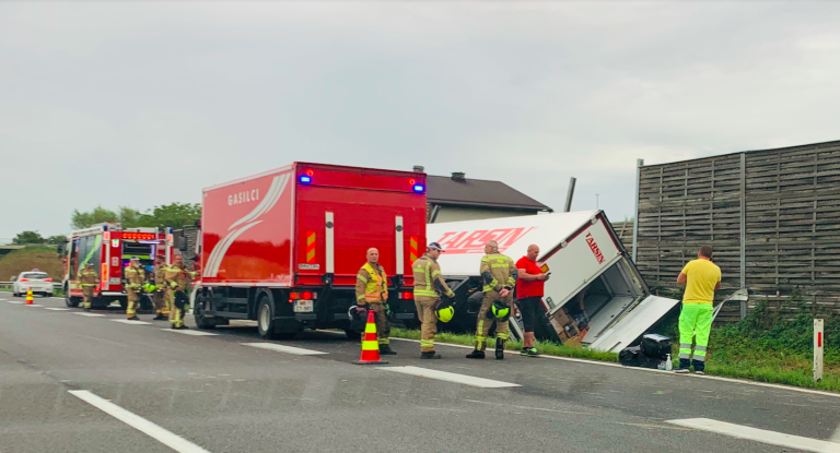 Na avtocesti se je v prometni nesreči prevrnil tovornjak, na kraju nesreče so gasilci, sporočajo bralci.