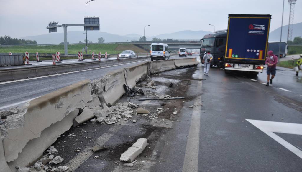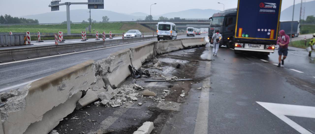 Danes zjutraj, ob 6.23, je na avtocesti pri cestninski postaji Tepanje, v občini Slovenske Konjice, v varovalno ograjo cestninske postaje trčilo tovorno vozilo.