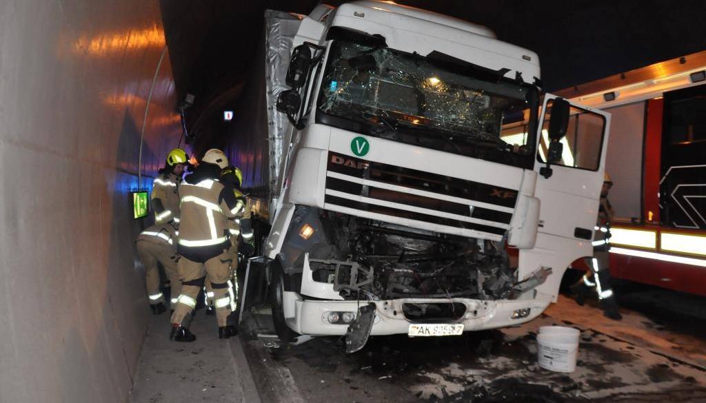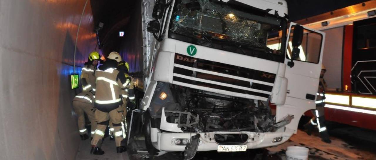 Zvečer okoli 21.30 so v predoru Pletovarje na štajerski avtocesti v Kraberku trčila tri tovorna vozila.