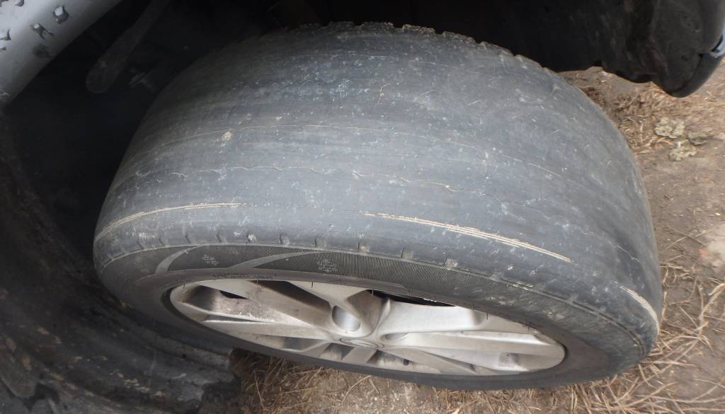 Pri pregledu tehnične brezhibnosti osebnega avtomobila pa so policisti ugotovili, da prednji pnevmatiki nista izpolnjevali predpisanih zahtev za uporabo v cestnem prometu, saj sta bili po celotni tekalni površini obrabljeni tako močno, da je bila vidna celo podloga iz tkanine tako imenovane »karkasa«.