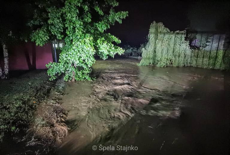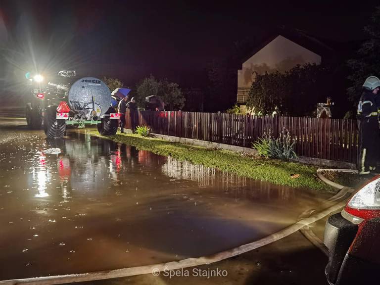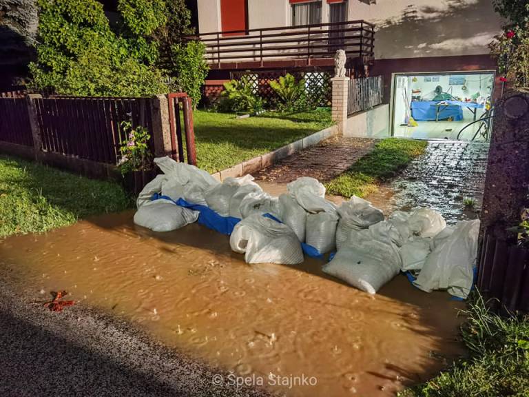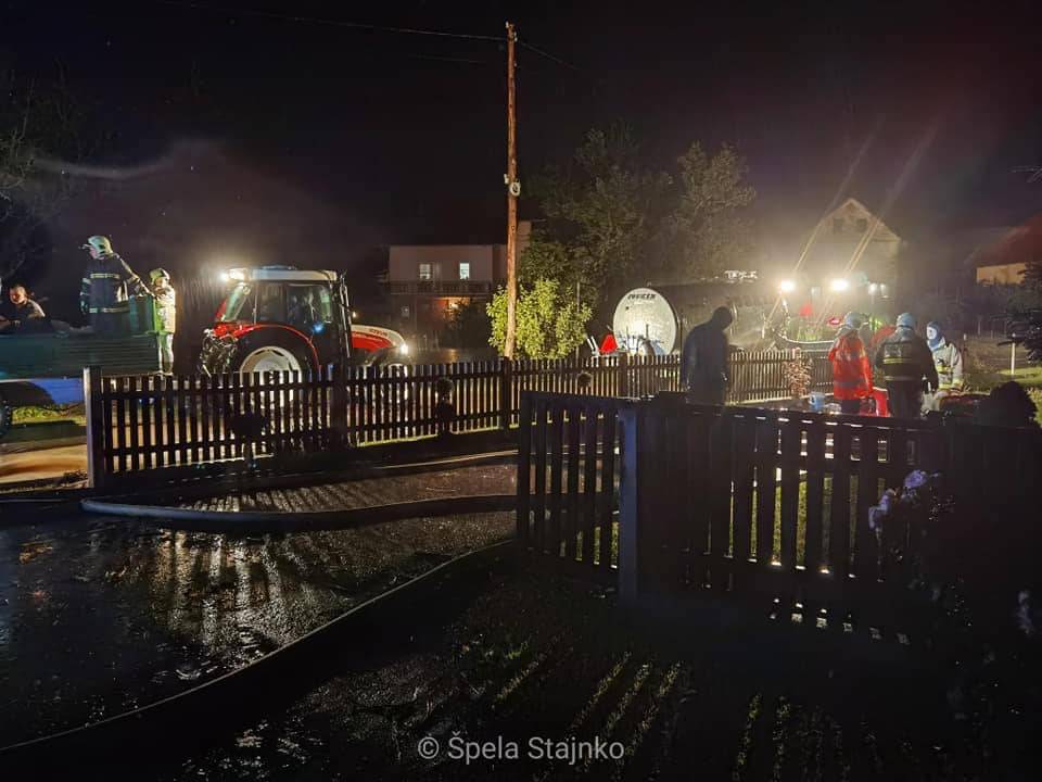 Ob potokih Črnec in Trnava so gasilci iz protipoplavnih vreč zgradili 20 nasipov in izčrpali meteorno vodo iz kleti 41 stanovanjskih objektov.