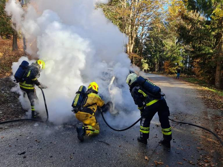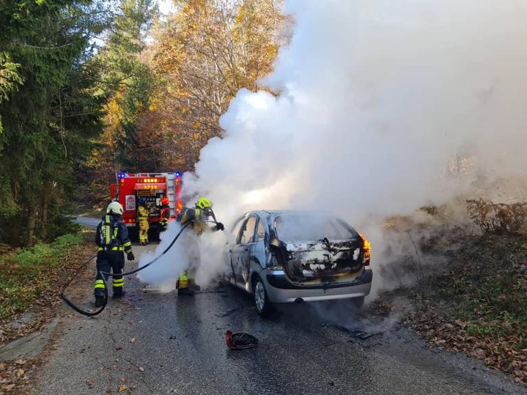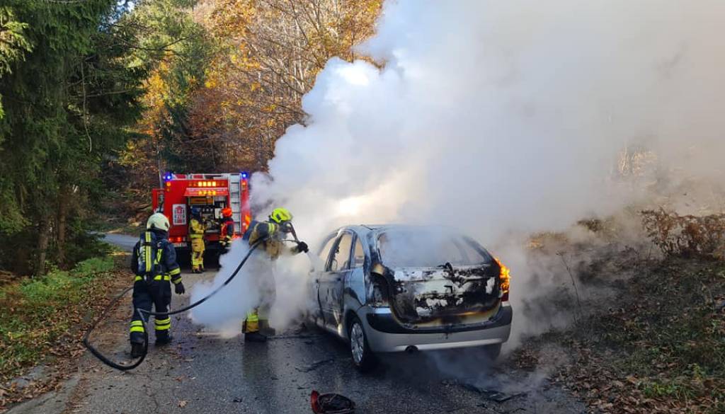 »Danes ob 13:19 smo bili iz strani Regijskega centra za obveščanje Maribor obveščeni o požaru osebnega vozila na lokalni cesti Spodnje Hoče - Belvi, v bližini lovske koče na Hočkem Pohorju,« so na Facebooku zapisali hoški gasilci.
