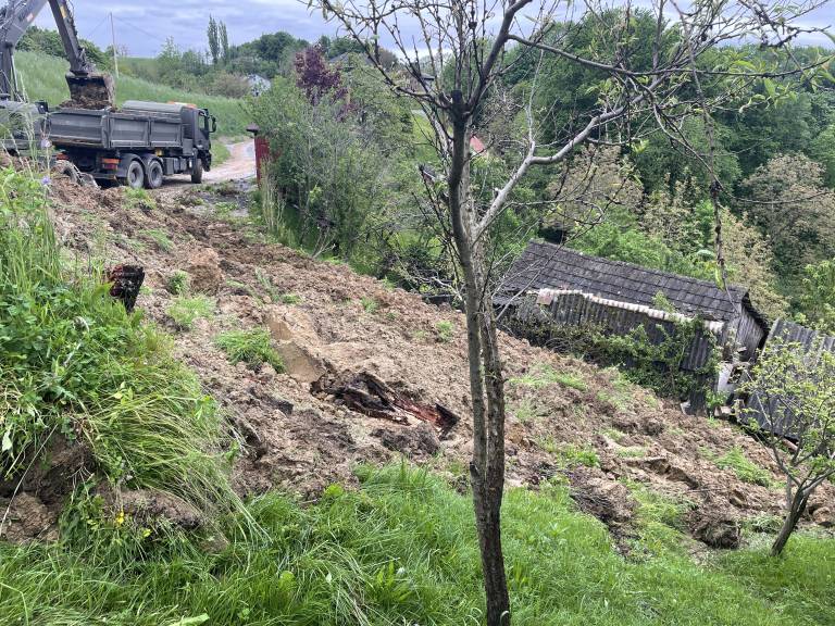 Zaradi zemeljskih plazov je ogroženih najmanj 12 hiš, do mnogih dostop ovirajo zasute ceste. Ponekod zaradi težko dostopnega terena vojaki ne morejo z mehanizacijo za sanacijo do hiš in zato posledice plazu odstranjujejo ročno.