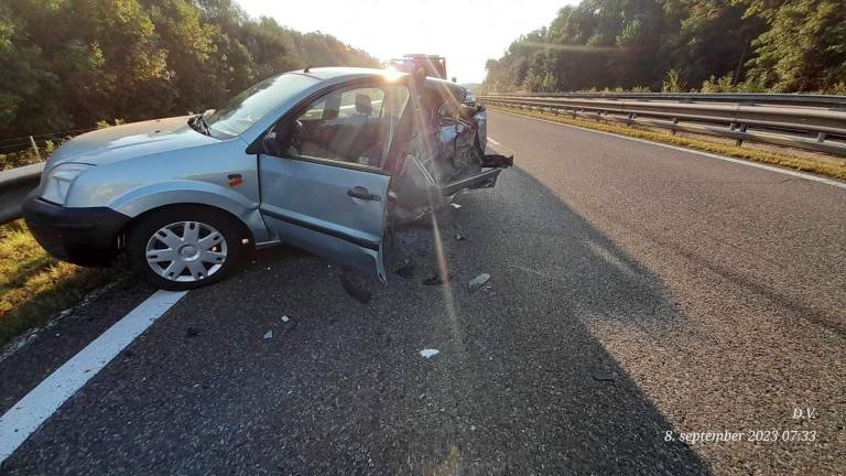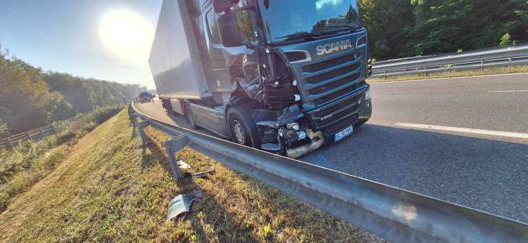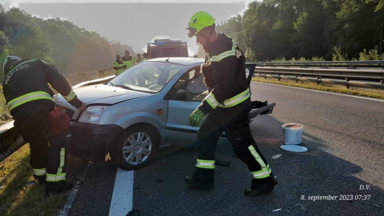 V nesreči sta bili udeleženi tovorno in osebno vozilo, pri tem je ena oseba utrpela poškodbe, zaradi nesreče pa je zaprt vozni pas.