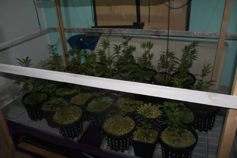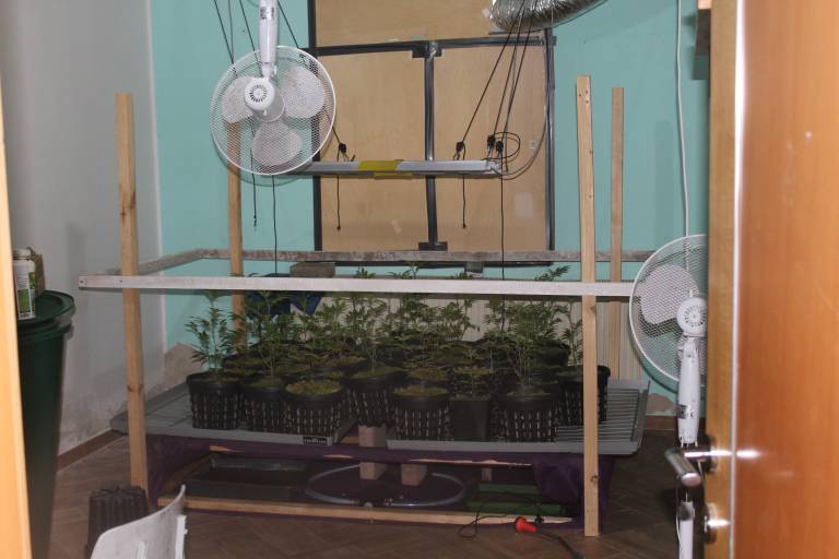 Med preiskavo so policisti našli in zasegli 77 rastlin konoplje, ki so bile posajene v treh različnih posebej prirejenih prostorih na skupni površini okoli 40 kvadratnih metrov.