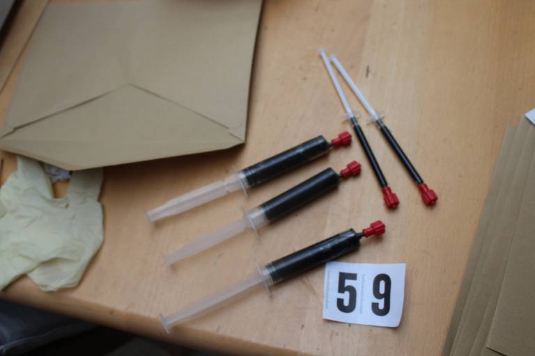 - devet brizgalk smolnate tekočine, za katere sumijo, da so derivat prepovedane droge konoplje,