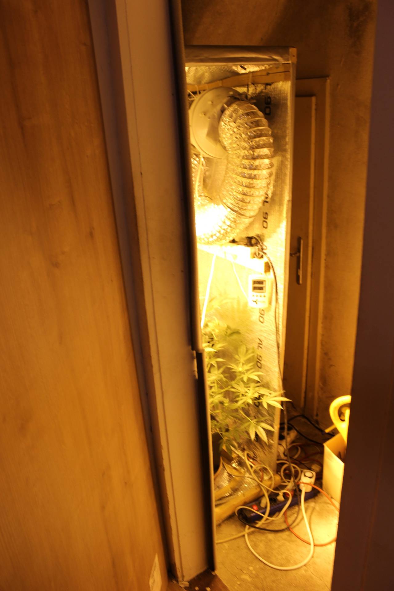 Med hišnima preiskavama na obeh lokacijah so odkrili tri prostore prirejene za gojenje prepovedane droge konoplje.