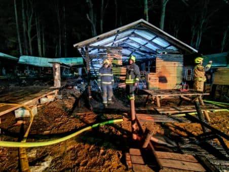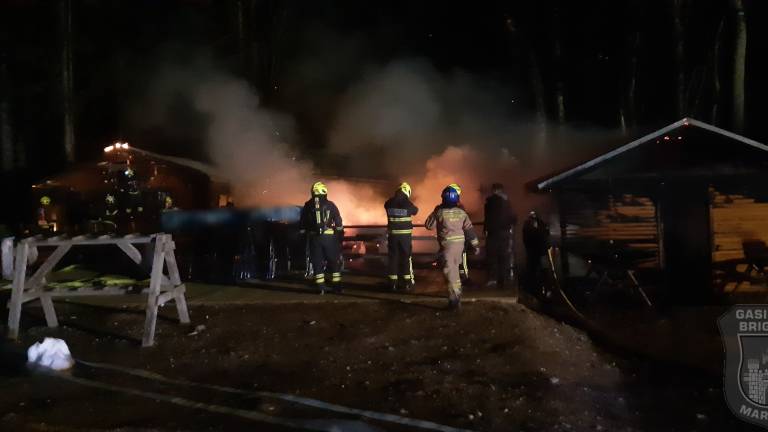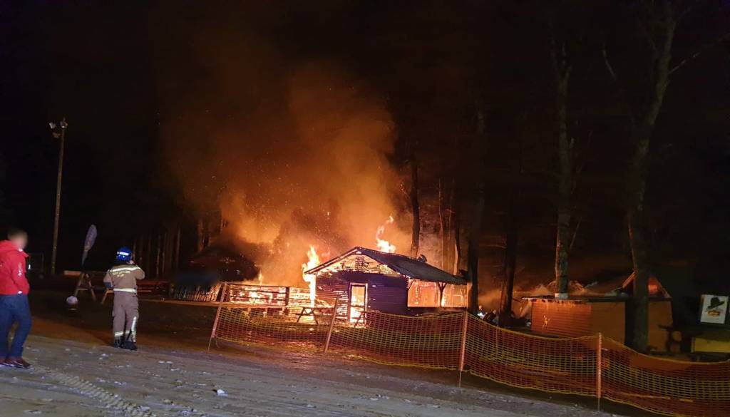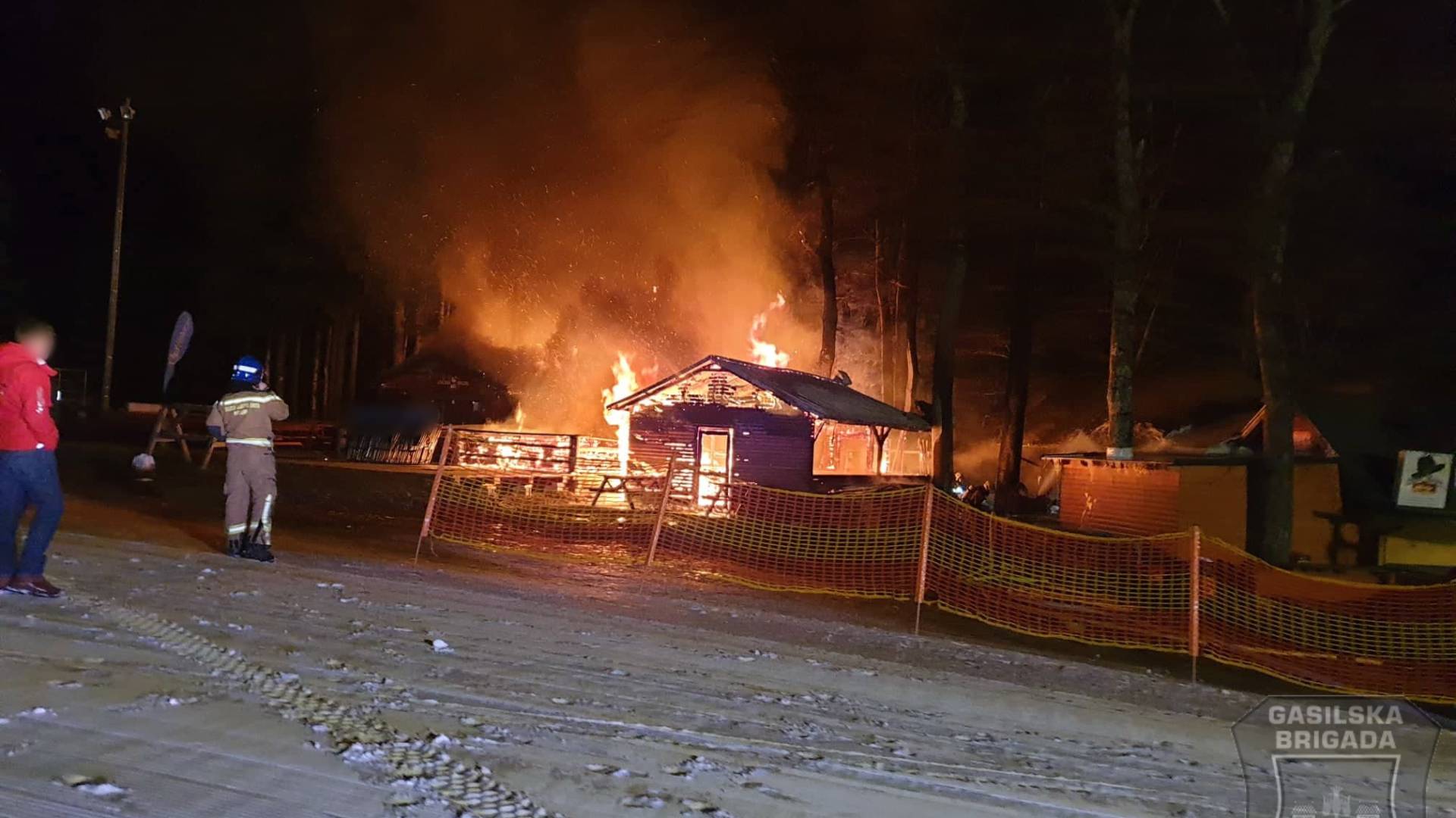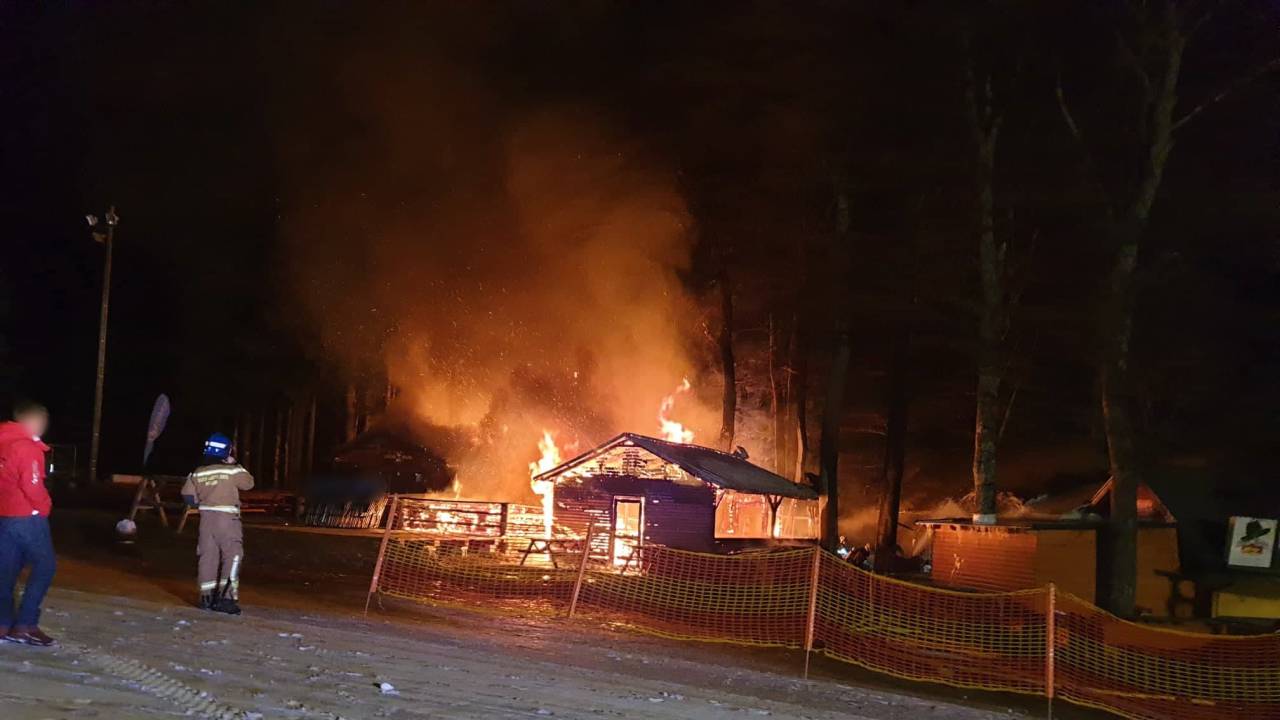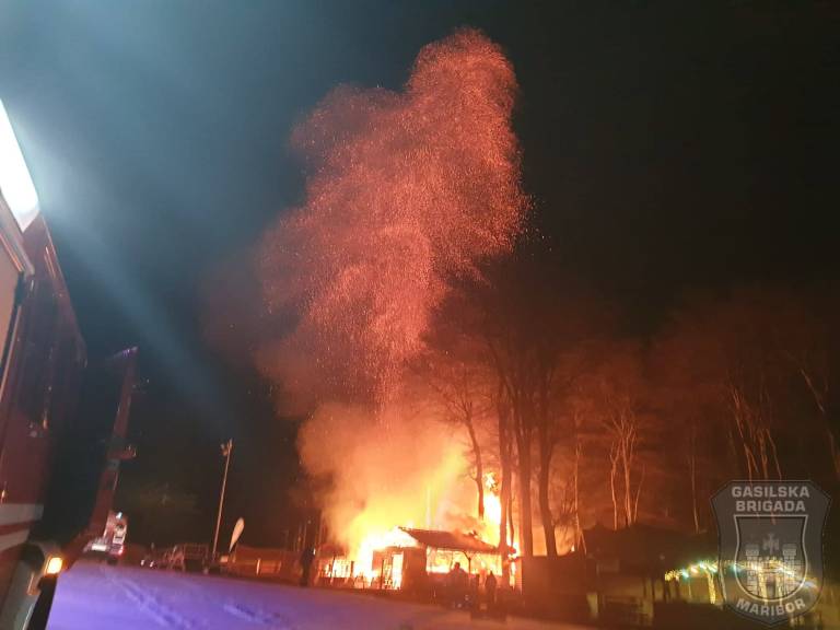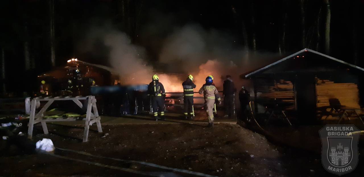 Danes ponoči ob 2.02 je na Hočkem Pohorju v občini Hoče Slivnica v bližini vzpenjače zagorelo v lesenem gostinskem objektu velikosti šest krat šest metrov. Požar se je nato razširil še na tri enake objekte v bližini.