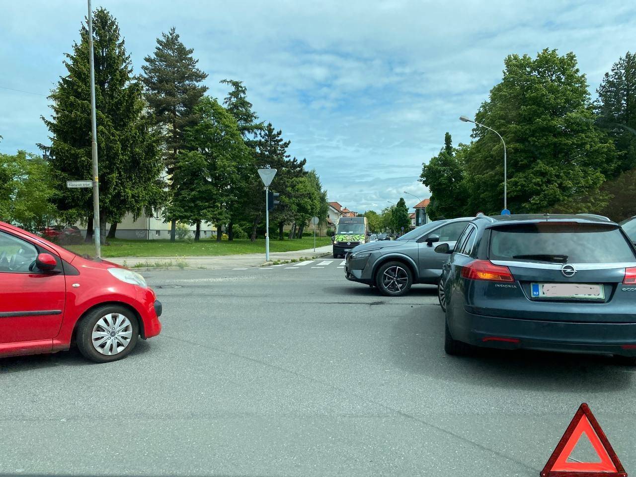 Na križišču ceste Proletarskih brigad in Ljubljanske ulice v bližini Hipermarketa Mercator je prišlo do trčenja treh osebnih vozil.