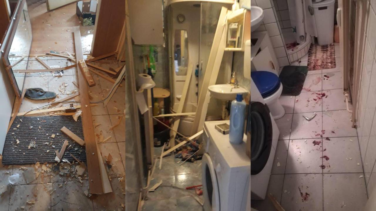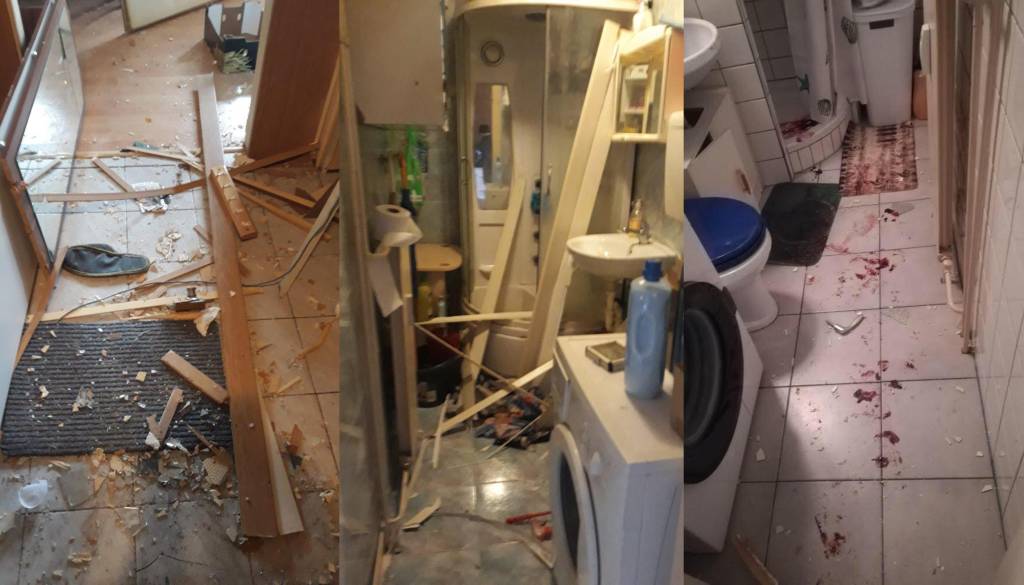 O njegovih poškodbah noge pričajo tudi fotografije okrvavljene kopalnice, ko si je Igerc hitel umiti ranjeno nogo. K sreči hujših poškodb ni utrpel, je pa zato veliko hujša škoda v stanovanju. To ni več primerno za bivanje.