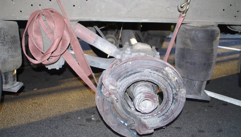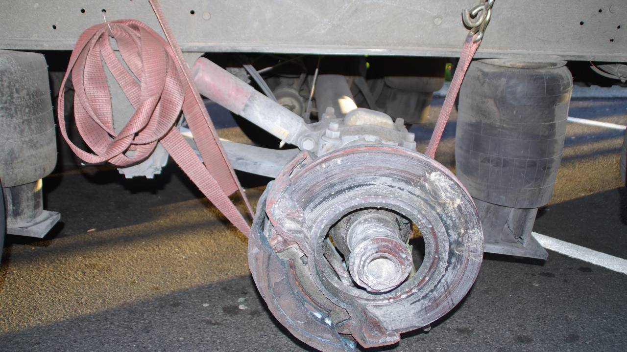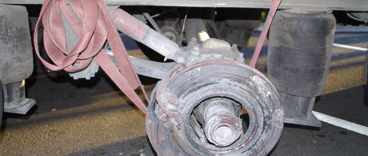 Policisti ujeli tovornjakarja, ki je vozil brez zadnjega levega kolesa na priklopniku.