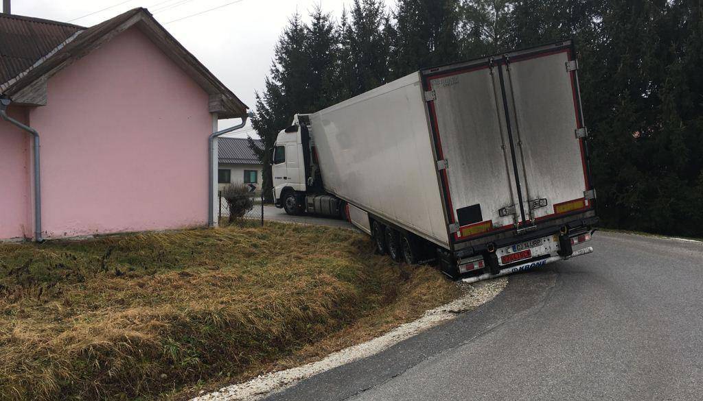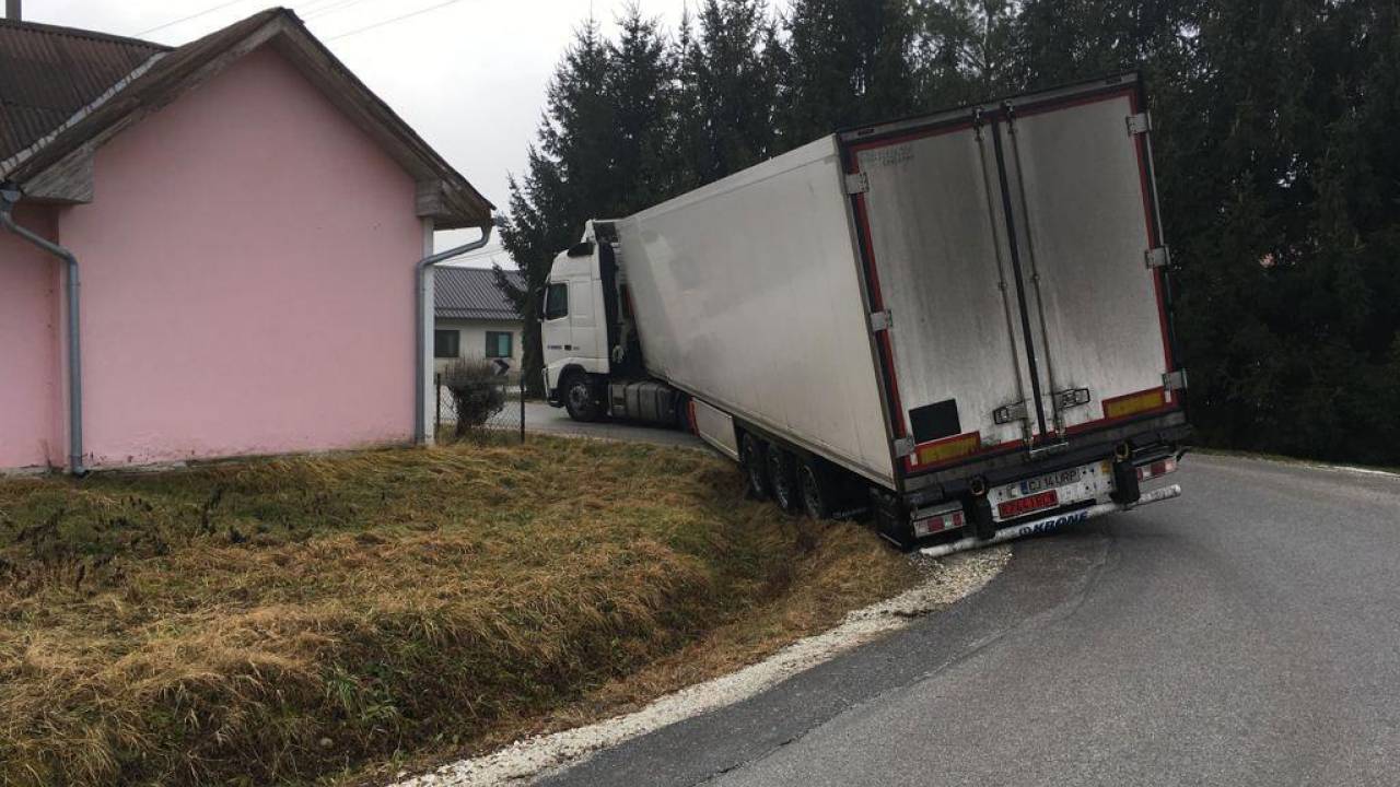 V ostrem zavoju je prišlo do skorajda identičnega zapleta z navigacijsko napravo in obtičanim tovornim vozilom kot lani.