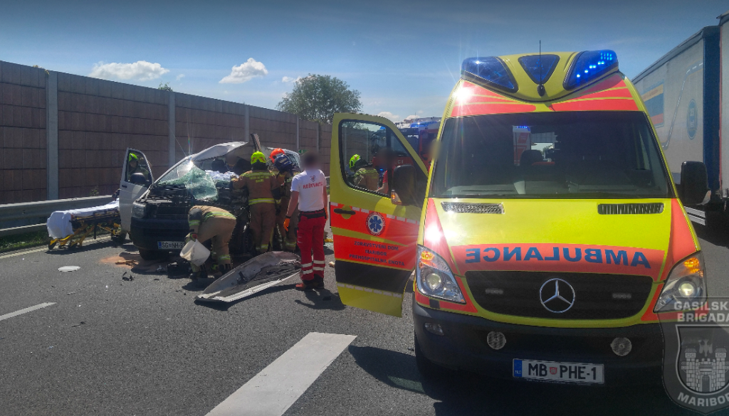Hudo trčenje na avtocesti pri mariborskem letališču. Iz zveriženega vozila so morali izrezati voznika kombija.