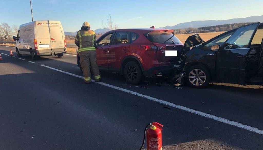 Kombi je namreč v naletu trčil v prikolico tovornega vozila, pri tem se je poškodovala ena oseba, poroča republiška uprava za zaščito in reševanje.
