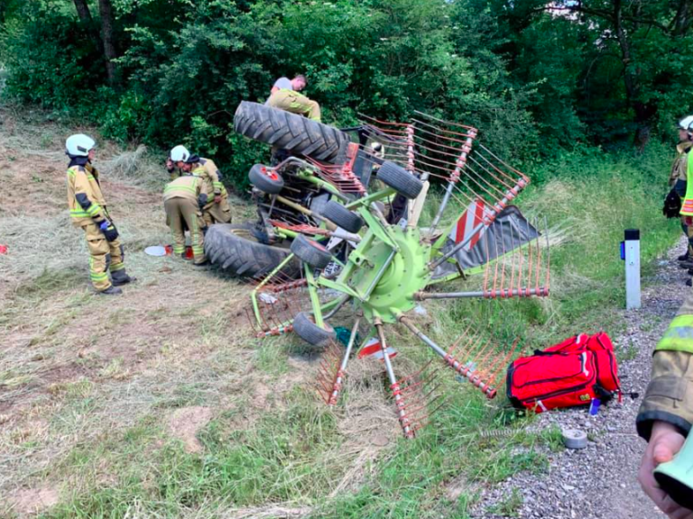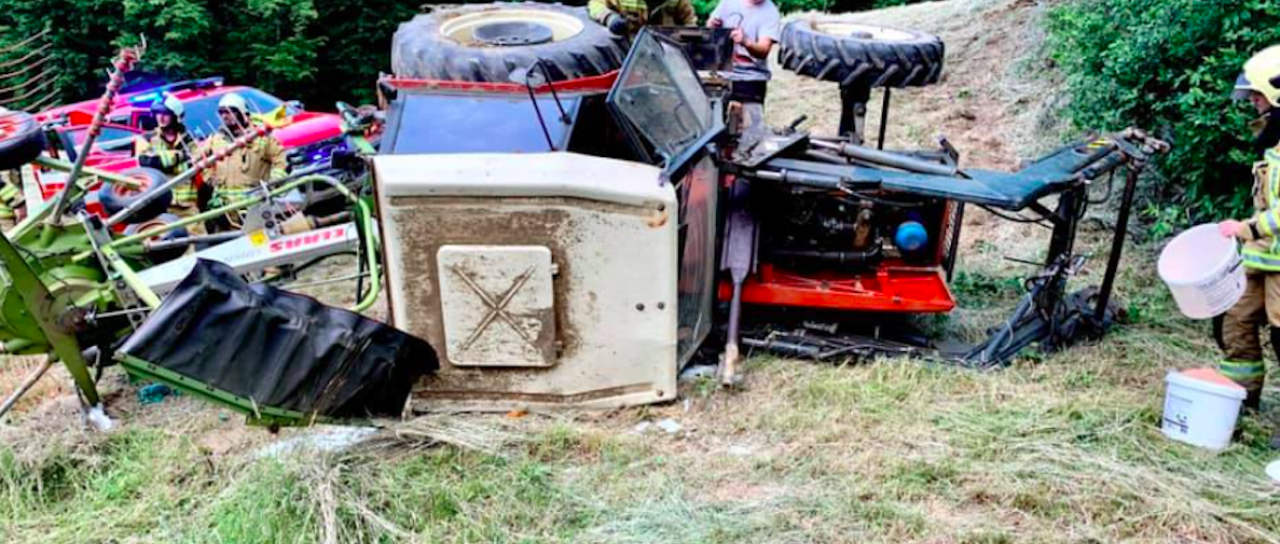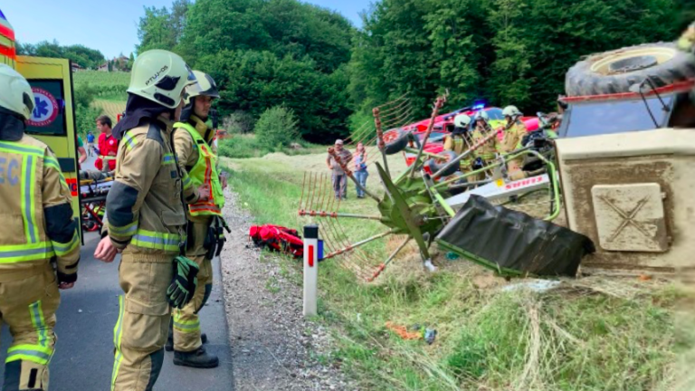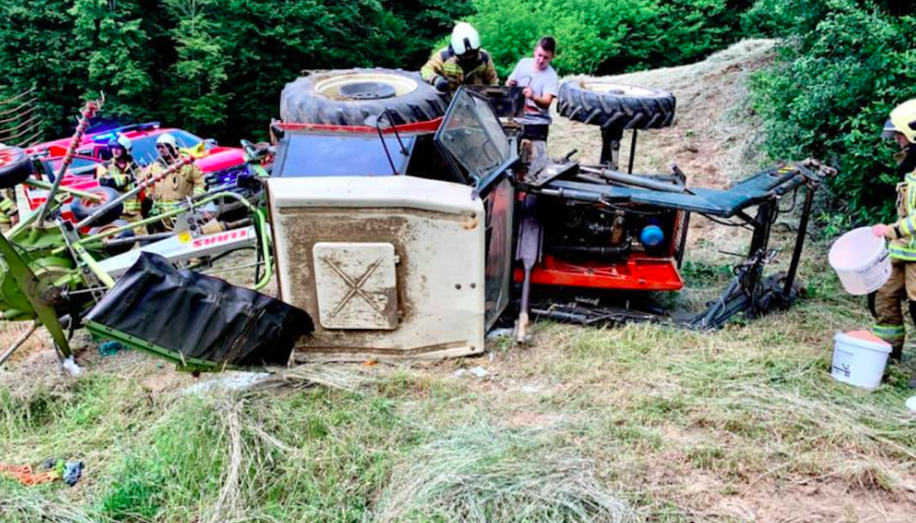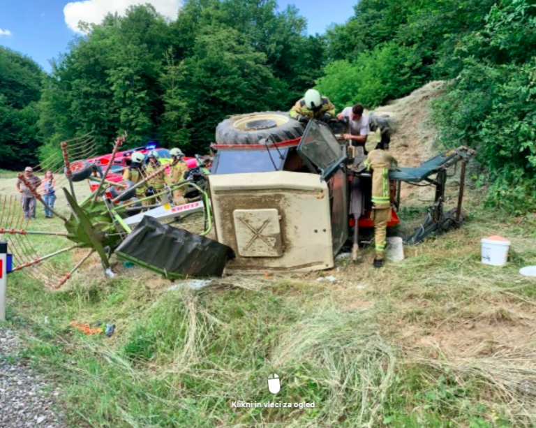 V Vidmu, v naselju Vareja, se je danes ob 15.21 pripetila delovna nesreča, pri kateri se je traktor prevrnil iz hriba na cesto.