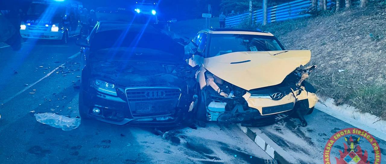 Kot poroča Uprava Republike Slovenije za zaščito in reševanje, sta včeraj ob 20.30 v naselju Brengova, občina Cerkevnjak, trčili osebni vozili, eno od teh pa je po trku zagorelo.