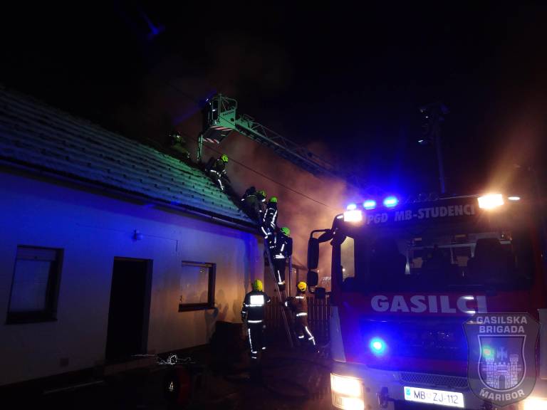 Ogenj je zajel tudi ostrešje stanovanjske hiše in uničil 15 kvadratnih metrov. Požar so pogasili gasilci Gasilske brigade Maribor in Prostovoljnega gasilskega društva Studenci, poroča Uprava Republike Slovenije za zaščito in reševanje.