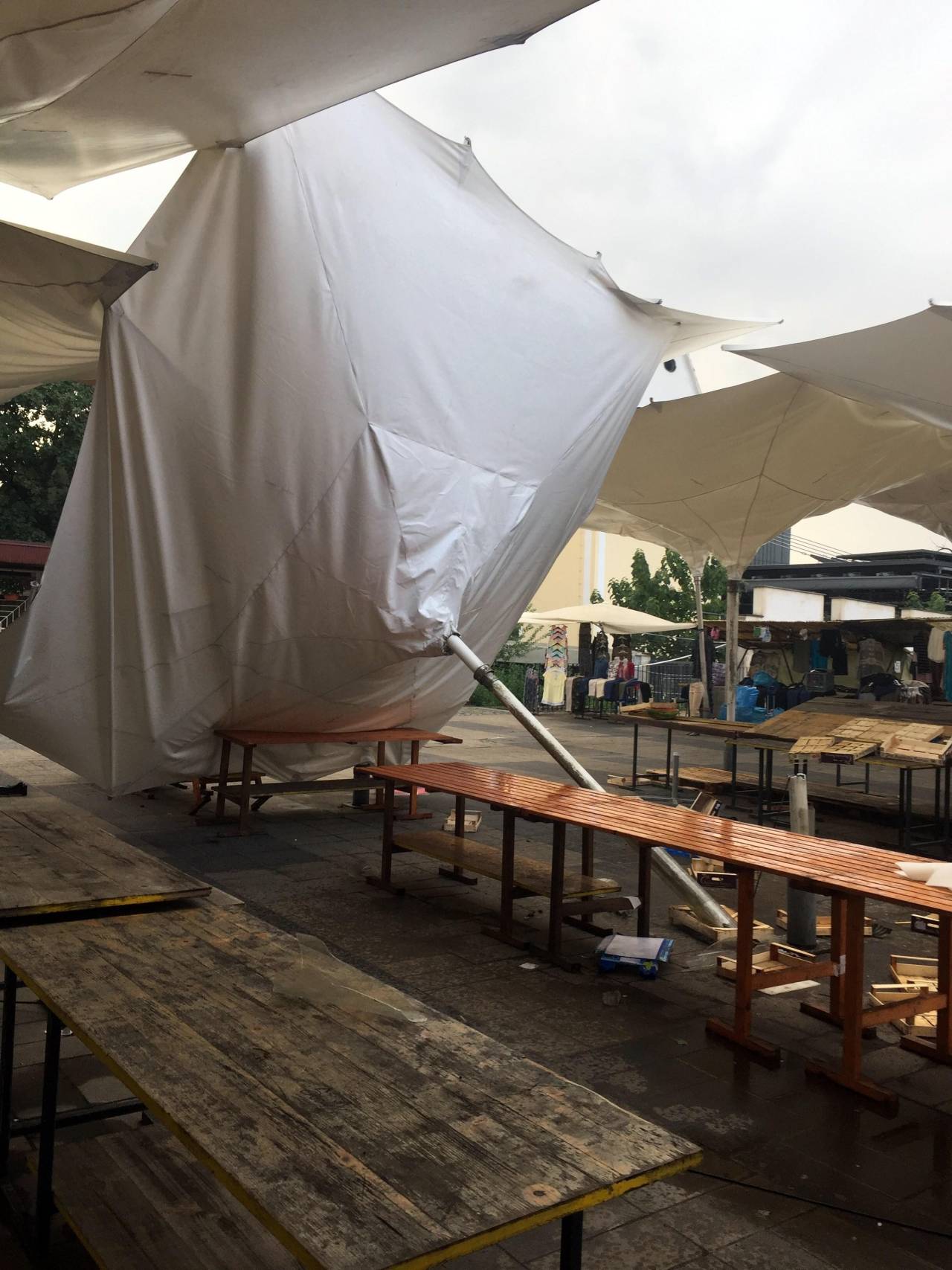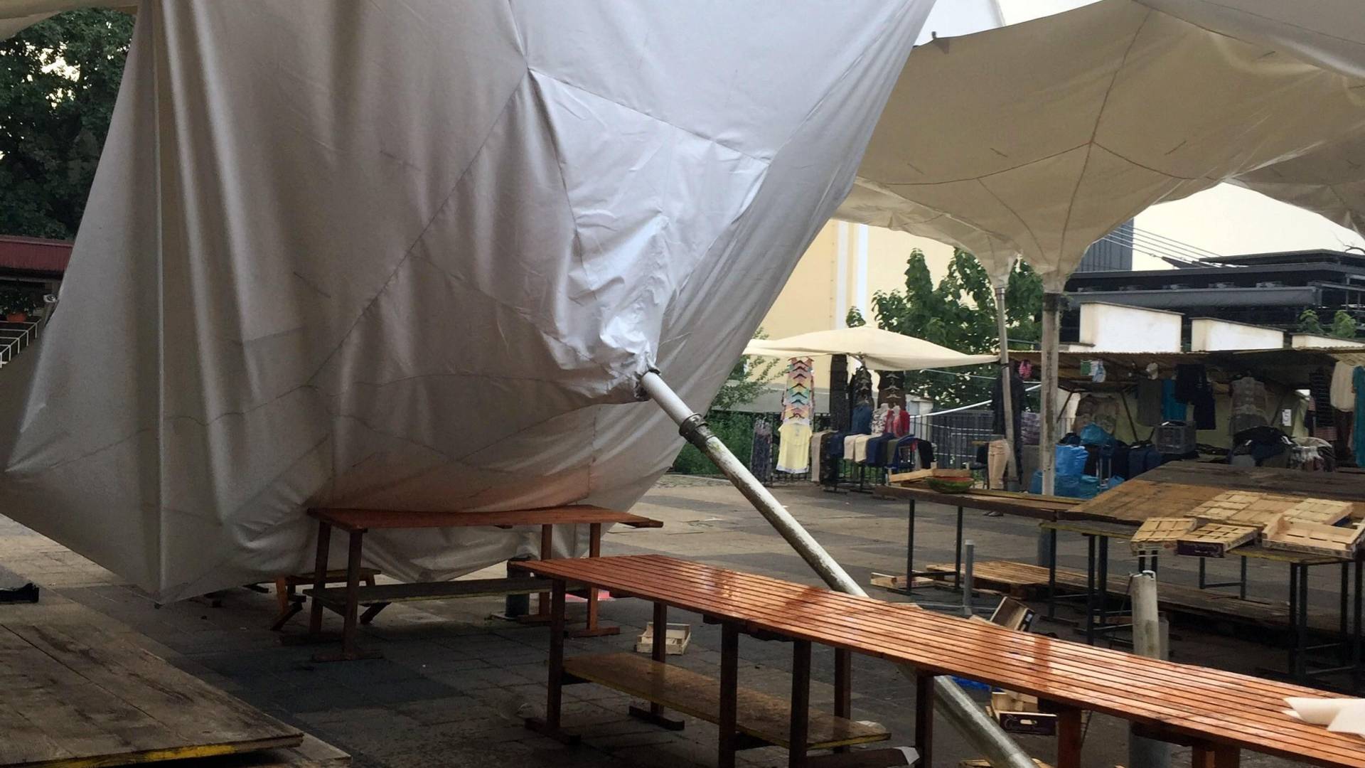 »Veter je podrl dežnik na osrednji tržnici, na dodatnih šestih pa zvil nosilce do te mere, da so praktično neuporabni,« so sporočili s Snage.
