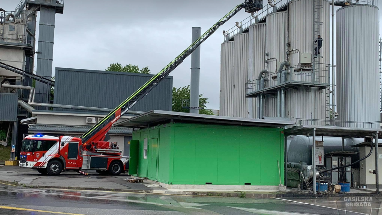 Gasilci so ob 8.41 prejeli prijavo, da je na Flisovi ulici v naselju Spodnje Hoče, občina Hoče-Slivnica, zagorelo v silosu za bitumen.