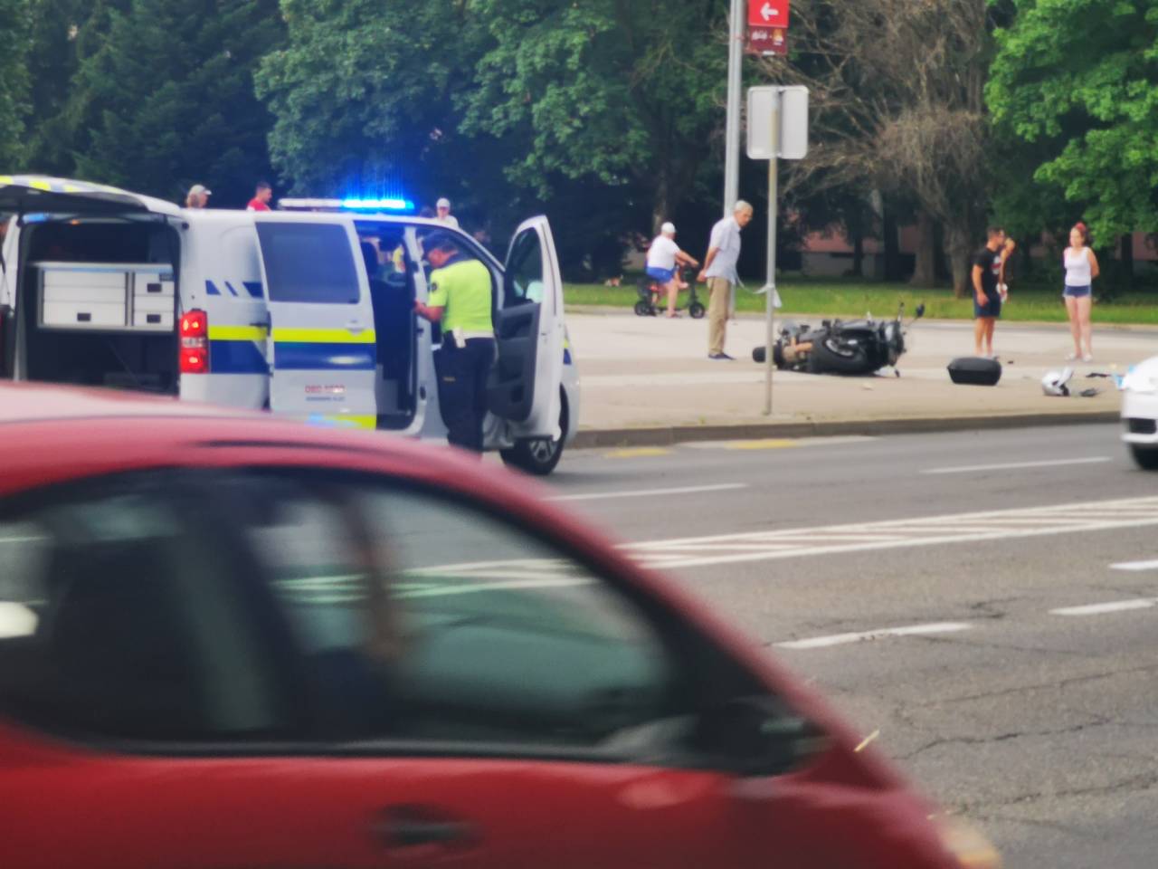 Popoldan je na Cesti proletarskih brigad v Mariboru prišlo do trčenja osebnega vozila in motorista s sopotnico.