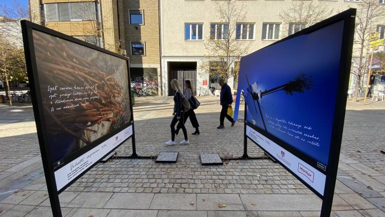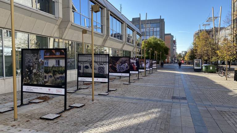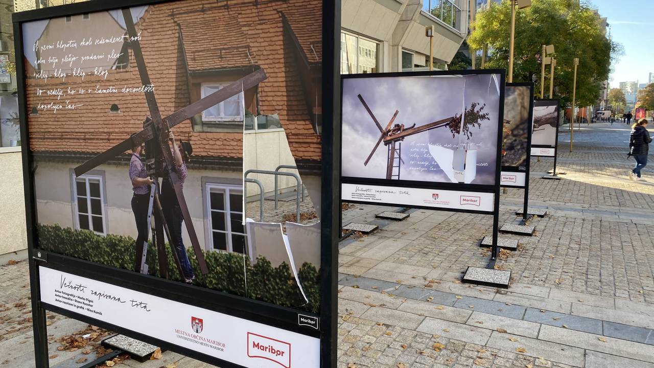 Razstavljenih fotografij na Trgu Leona Štuklja so se lotili nepridipravi.