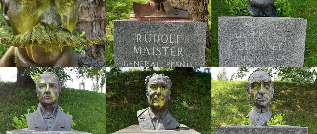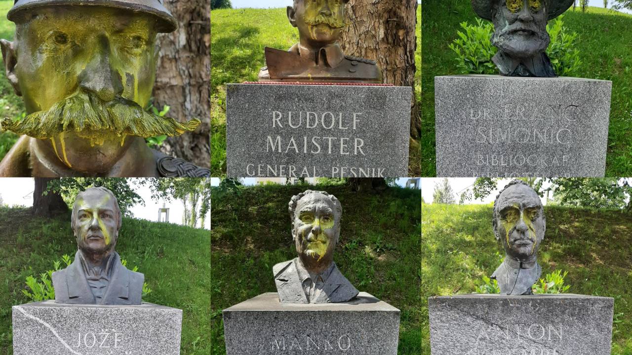 Osem kipov v Aleji velikih v Gornji Radgoni so neznanci poškropili z rumeno barvo.