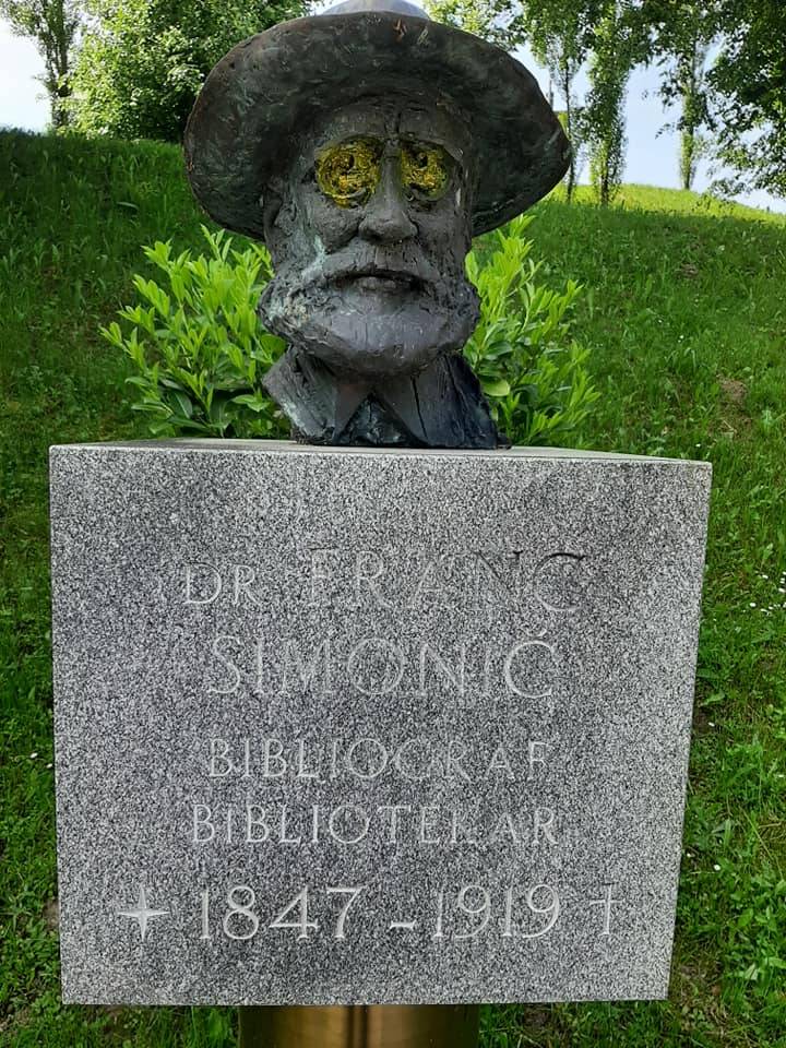 Kip generala Maistra v rumeni barvi. Poškropljenih še sedem drugih kipov. V fontani pa so pristale knjige iz tamkajšnje manjše izposojevalnice knjig.