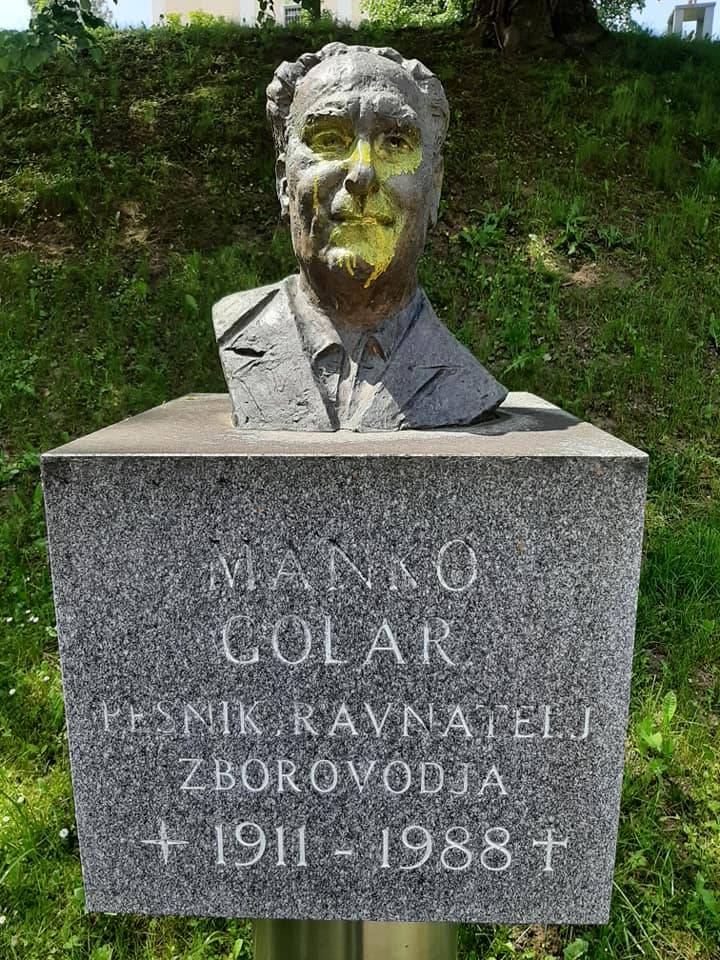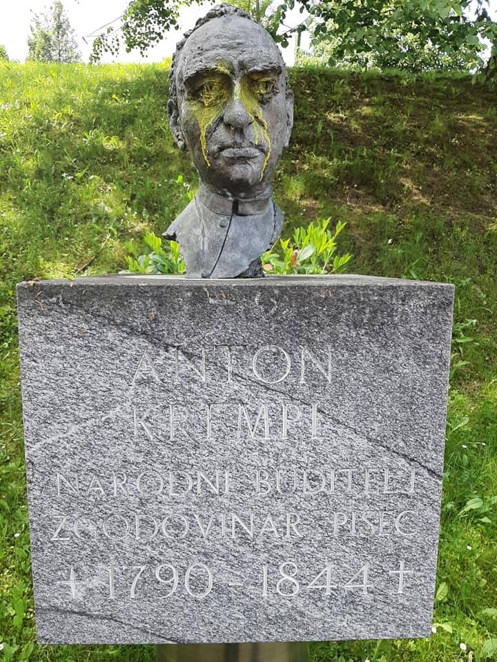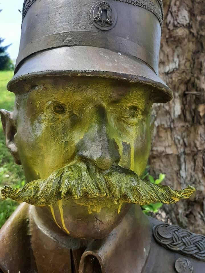 Kot je na družbenem omrežju Facebook zapisal Dušan Zagorc, upokojeni ravnatelj Osnovne Gornja Radgona in znani Radgončan, so bili kipi z rumenim sprejem pomazani v noči iz sobote na nedeljo, policija pa je že obveščena.