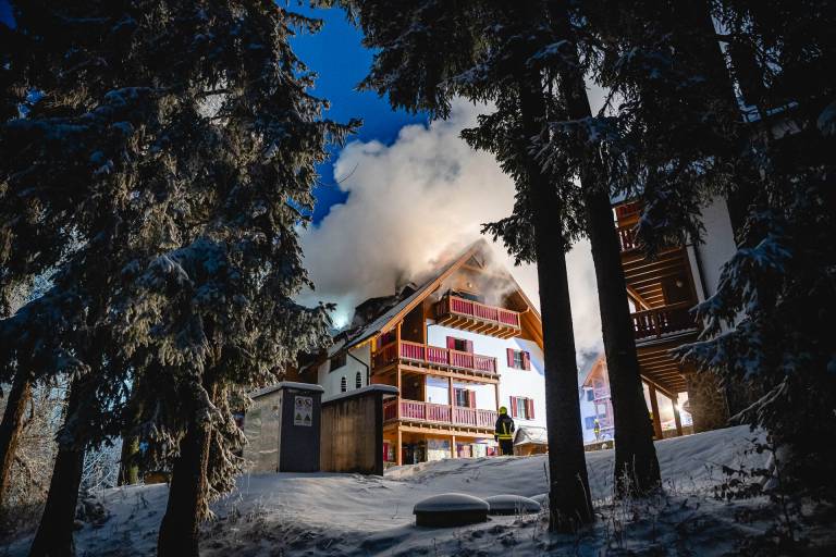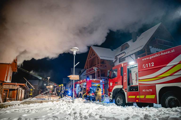 Po tem, ko je zagorelo v enem izmed apartmajev na Mariborskem Pohorju, je gasilcem uspelo omejiti požar in ga že skoraj pogasiti.