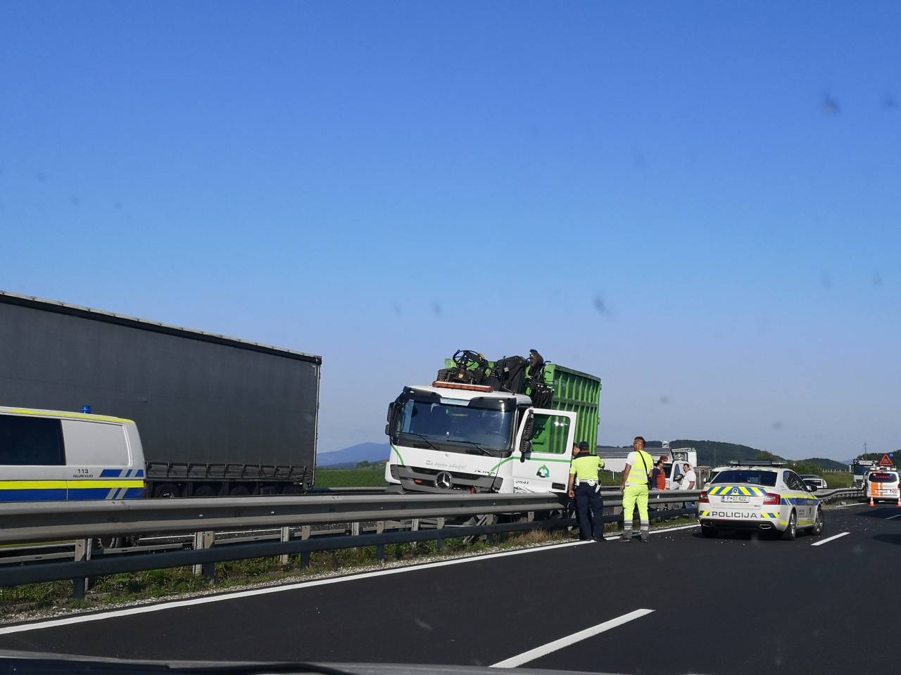 Na pomurski avtocesti, iz smeri Maribora proti Murski Soboti, je nekaj metrov za počivališčem Lomarje prišlo do prometne nesreče, v kateri sta udeležena motorno kolo in tovorno vozilo.