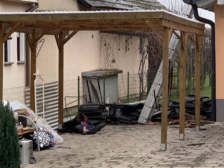 Do hiše v Pongrcah pri Šikolah je v dopoldanskih urah moral pripeljati tovornjak z zabojnikom za kosovne odpadke. Vanj so lastniki hiše s pomočjo gasilcev spravljali preostanke povsem uničenega ostrešja, ki je ponoči zgorelo v požaru, ki ga je pomagalo ukrotiti kar 97 gasilcev.