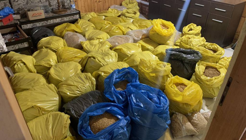 Med hišno preiskavo pri enem izmed osumljencev v okolici Maribora, so zasegli tudi 638 kilogramov rezanega tobaka