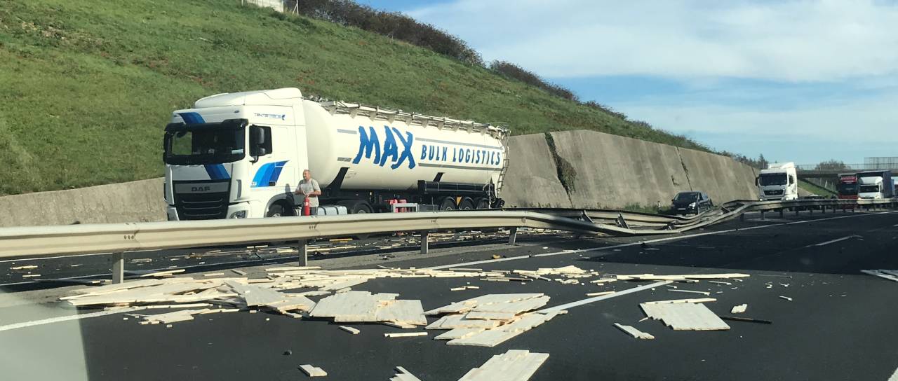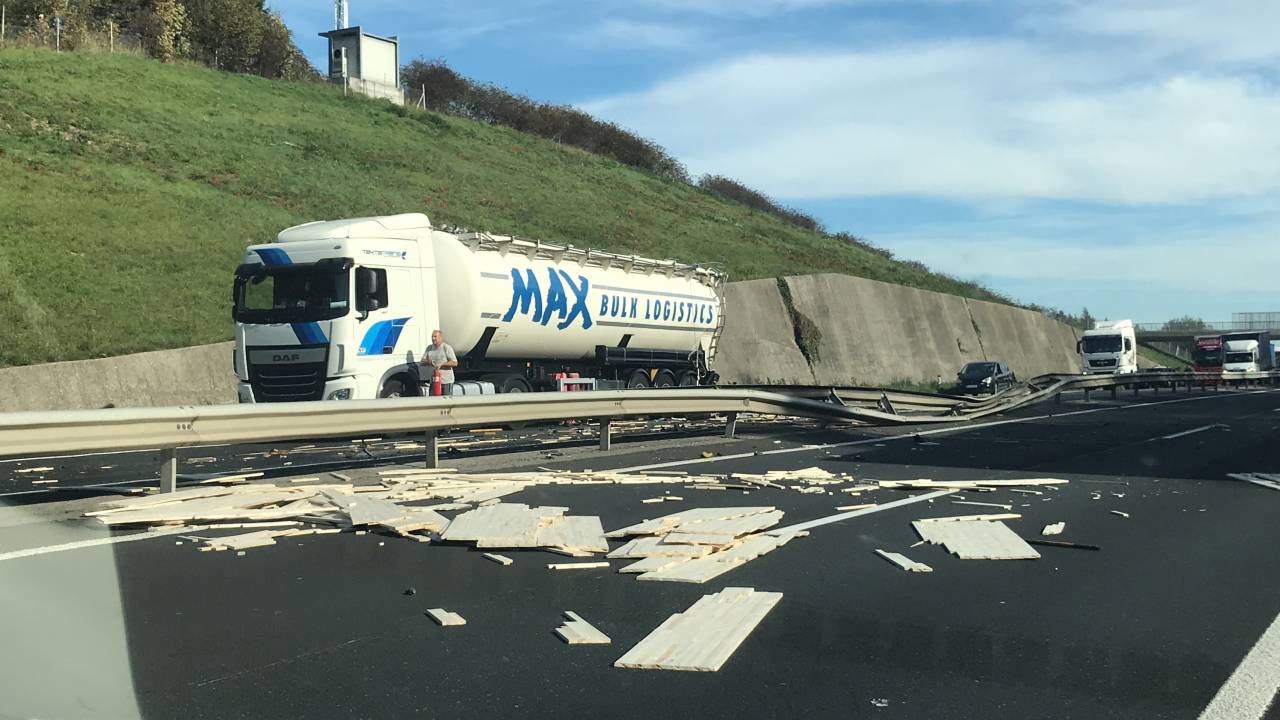 Po besedah očividcev je po trčenju tovornjaka v zadek tovornega vozila s cisterno, tovornjak zaneslo proti sredini avtoceste v varnostno ograjo, ki je preprečila, da bi tovornjak trčil v nasproti vozeča vozila. A del tovora - lesene plošče - se je razsul, te so ležale tudi na nasprotnem voznem pasu.