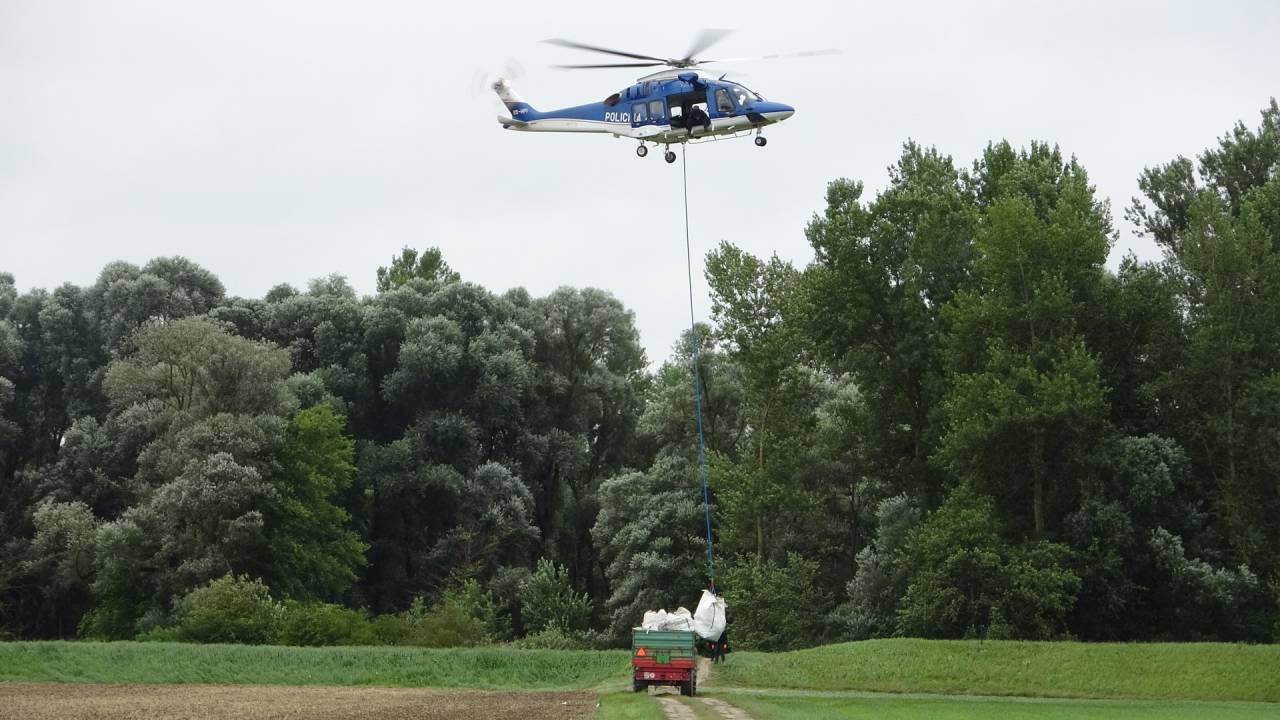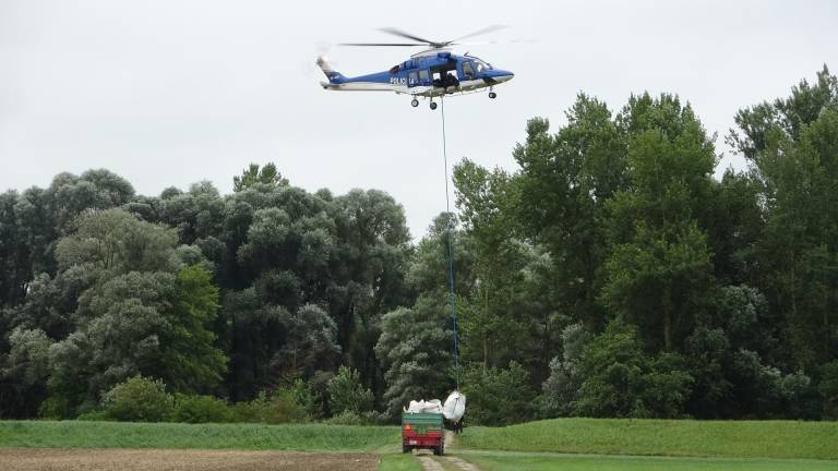 Policijski helikopter smo 'zasačili' med delom. Polne 'jumbo' vreče prepovedane droge so drug za drugim odvažali z mesta skritega na drugi strani gozda in nalagali na traktorsko prikolico. Ko so prikolico napolnili, so zaseženo drogo s traktorjem odpeljali.