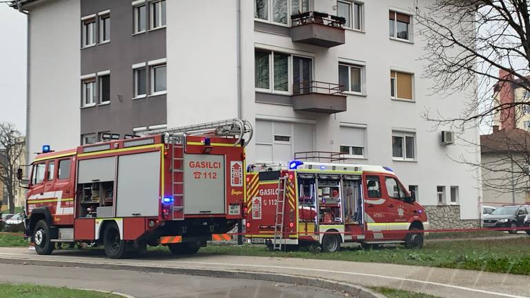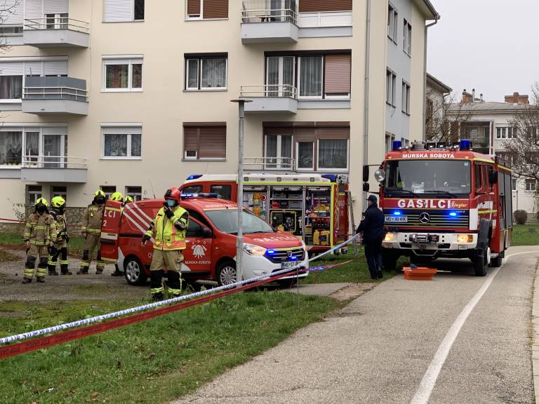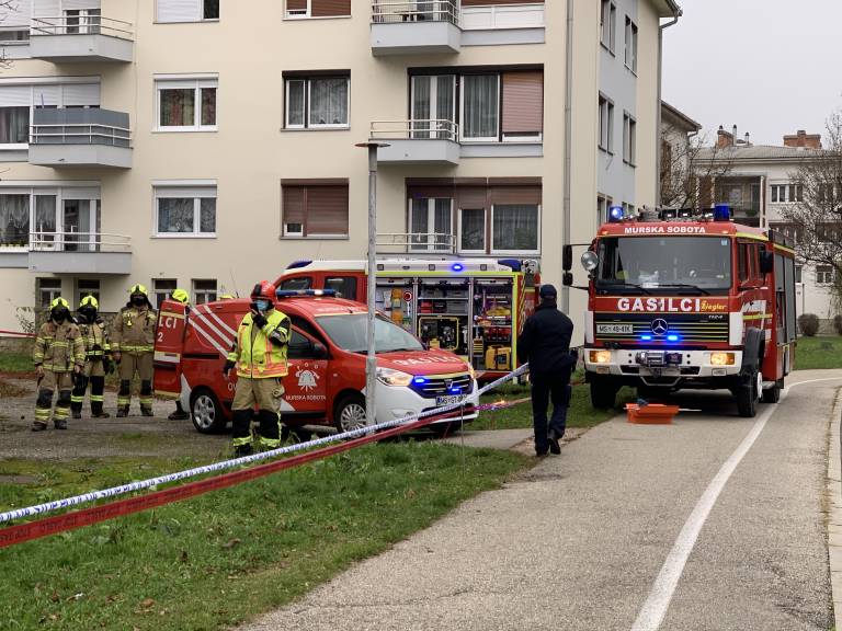 V središču Murske Sobote, na ulici Štefana Kovača, v stanovanjskem bloku nasproti Gledališča Park mrgoli policistov in gasilcev.