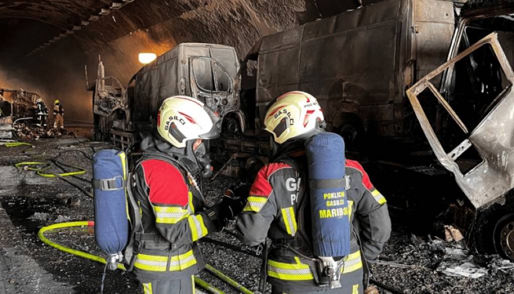 Na mariborski vzhodni obvoznici je v predoru Vodole prišlo do večje prometne nesreče, v kateri so zagorela tri vozila. Zaradi posledic prometne nesreče je tam promet še vedno močno oviran.
