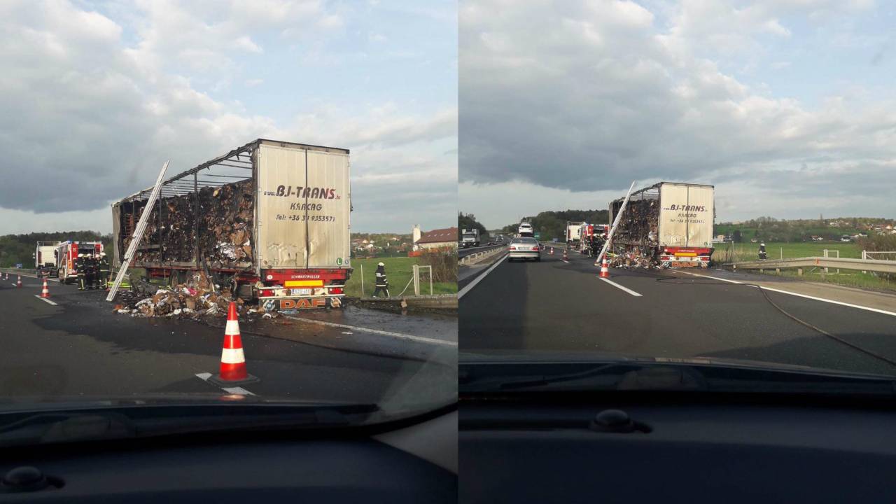 Zaradi gorečega tovornjaka tudi delna zapora pomurske avtoceste