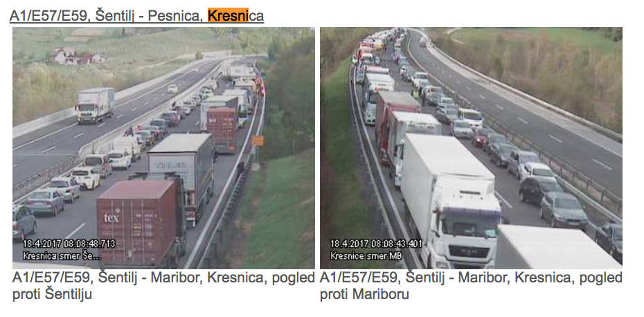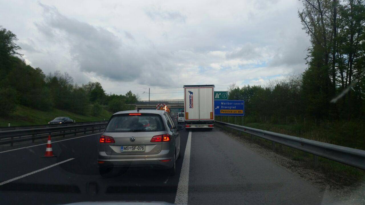 Avtocesta A1 je v smeri proti Avstriji popolnoma zaprta med rondojem Pesnica in priključkom Šentilj, obvoz pa je preusmerjen na staro cesto proti Šentilju. Na avtocesti pa je medtem že nastal zastoj, ki se vleče vse do pesniškega rondoja in še dlje.