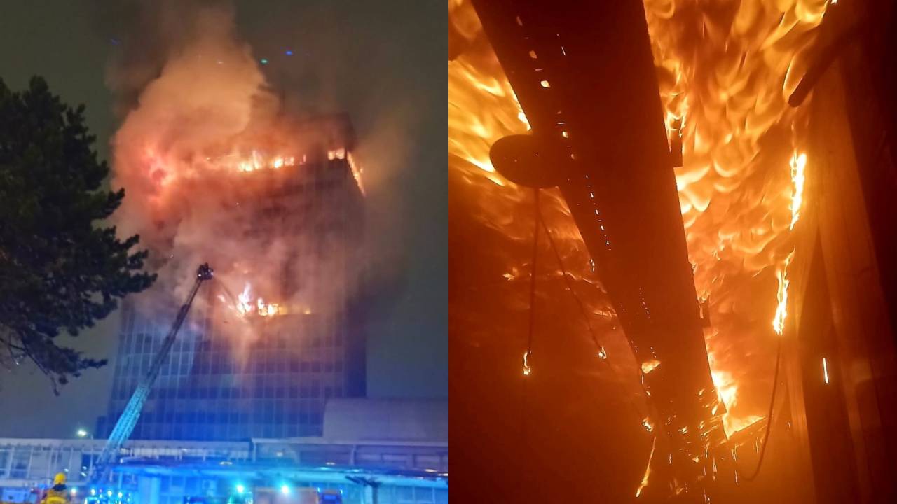 V stolpnici časnika Vjesnik v Zagrebu je v ponedeljek pozno zvečer izbruhnil požar, ki je zajel več nadstropij in ostrešje stavbe.