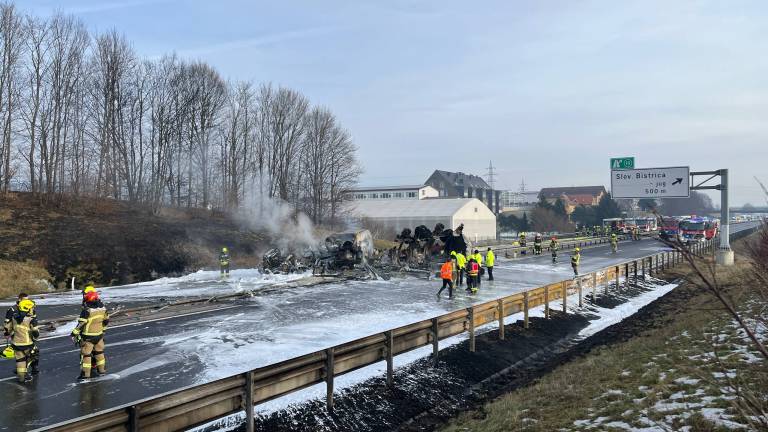Za zdaj še nimajo informacij o morebitnih poškodovanih osebah. Promet na tem delu je v celoti zaprt in preusmerjen na regionalno cesto.