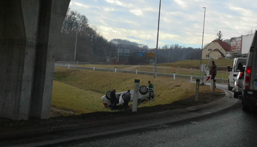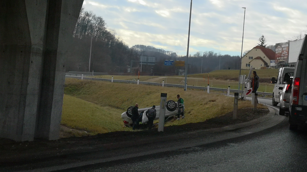 V okolici Maribora je prišlo do prometne nesreče, osebni avtomobil je pristal na strehi.