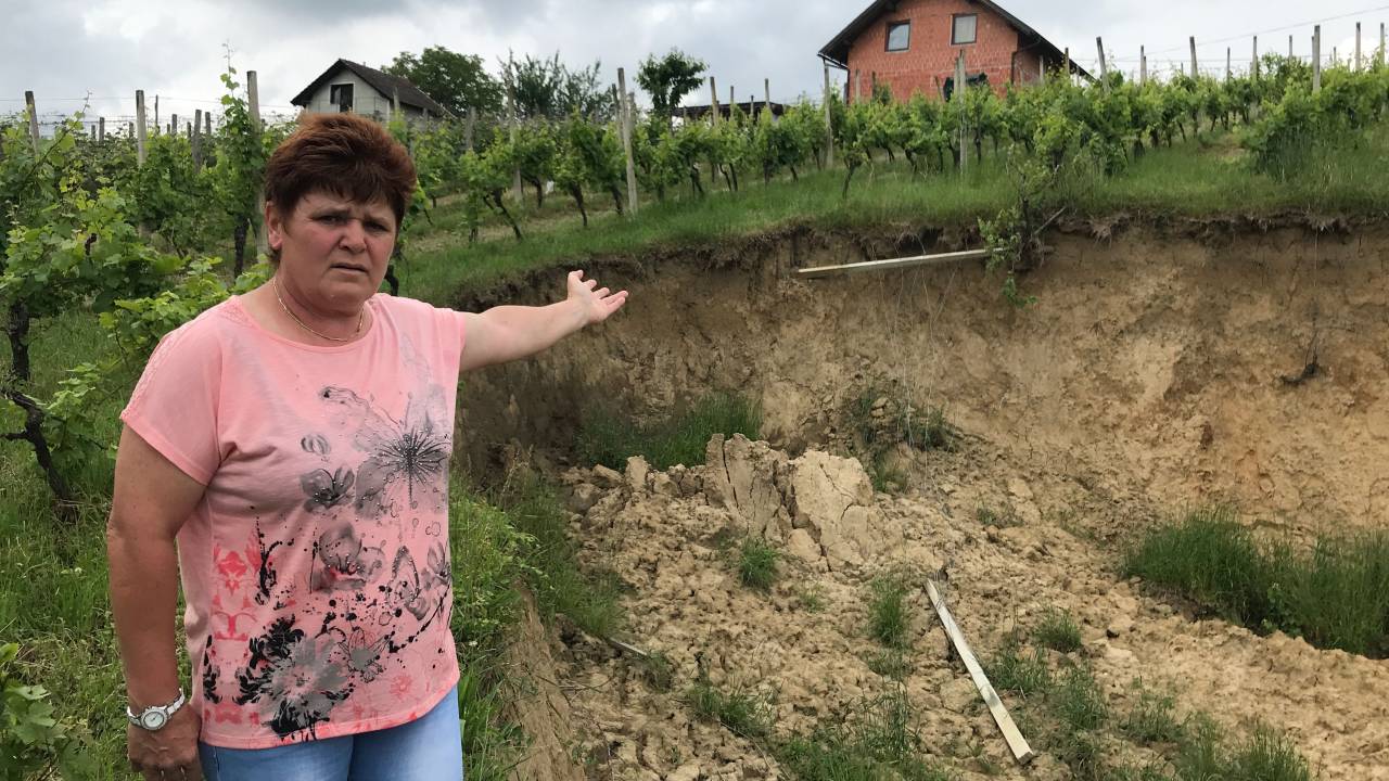 Jasna Vlašič živi s svojo hčerko na Vičanske vrhu pri Ormožu in odkar se je pred petimi leti v bližini njune hiše pojavil podor zemlje, živita v nenehnem strahu, saj se po vsakem dežju velika luknja v hribu širi proti hiši.
