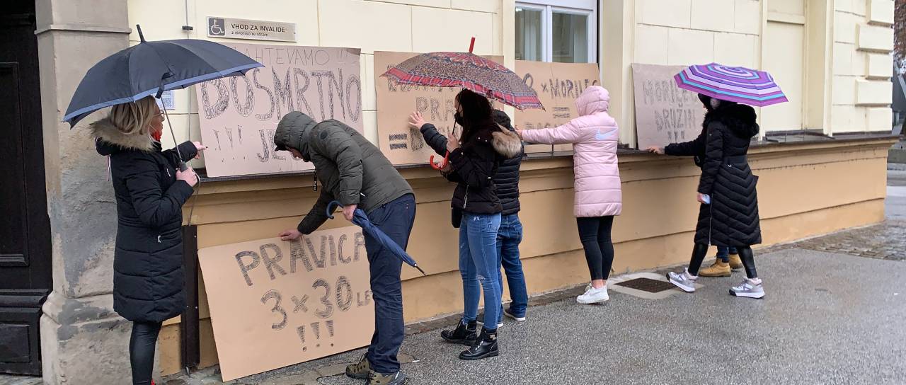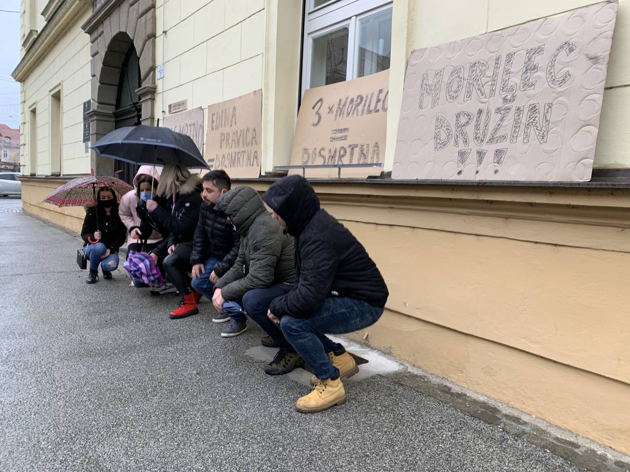 Prijatelji, znanci in podporniki družine so pred sodiščem danes zjutraj pričakali začetek sodbe.
